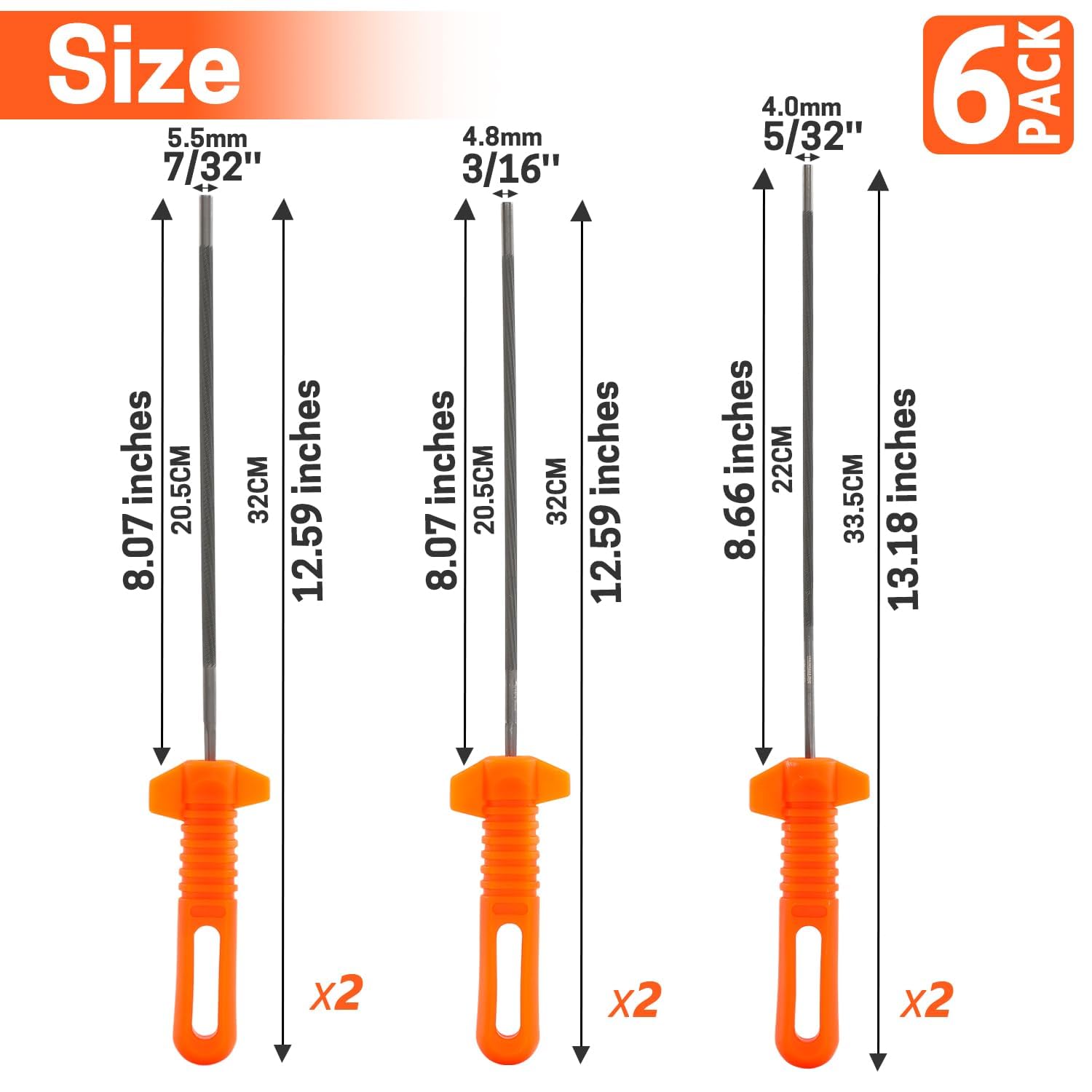 チェンソーヤスリ 6本セット 4.0mm 4.8mm 5.5mm チェーンソー 目立て 修正 刃研ぎ 研磨 丸ヤスリ