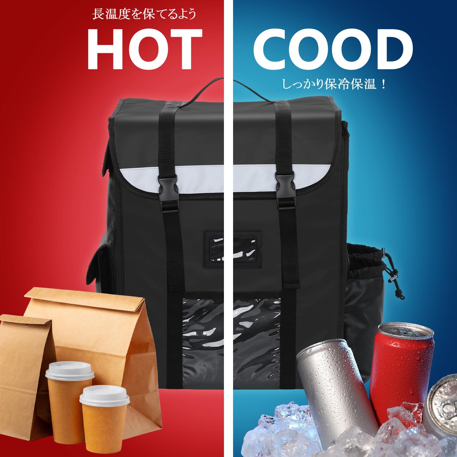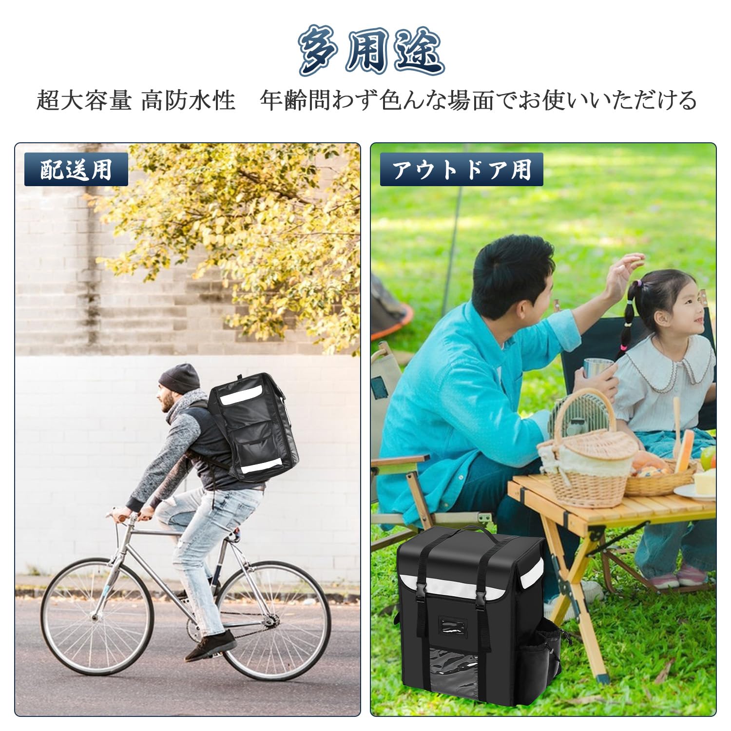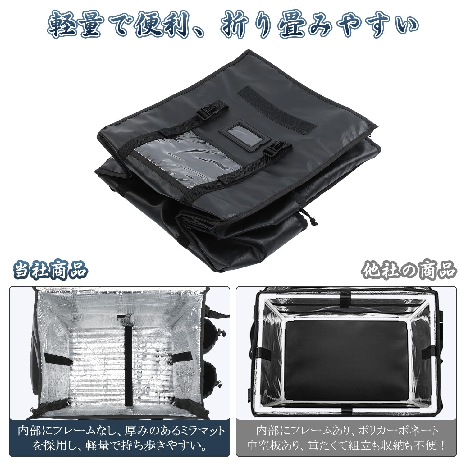 デリバリーバック 配達バッグ 40L大容量 保温保冷防水 折りたたみ式 軽量 耐荷重 調節可能なT字型下見板張り 業務用フード配送バッグ アウトドア キャンプにも ケータリング