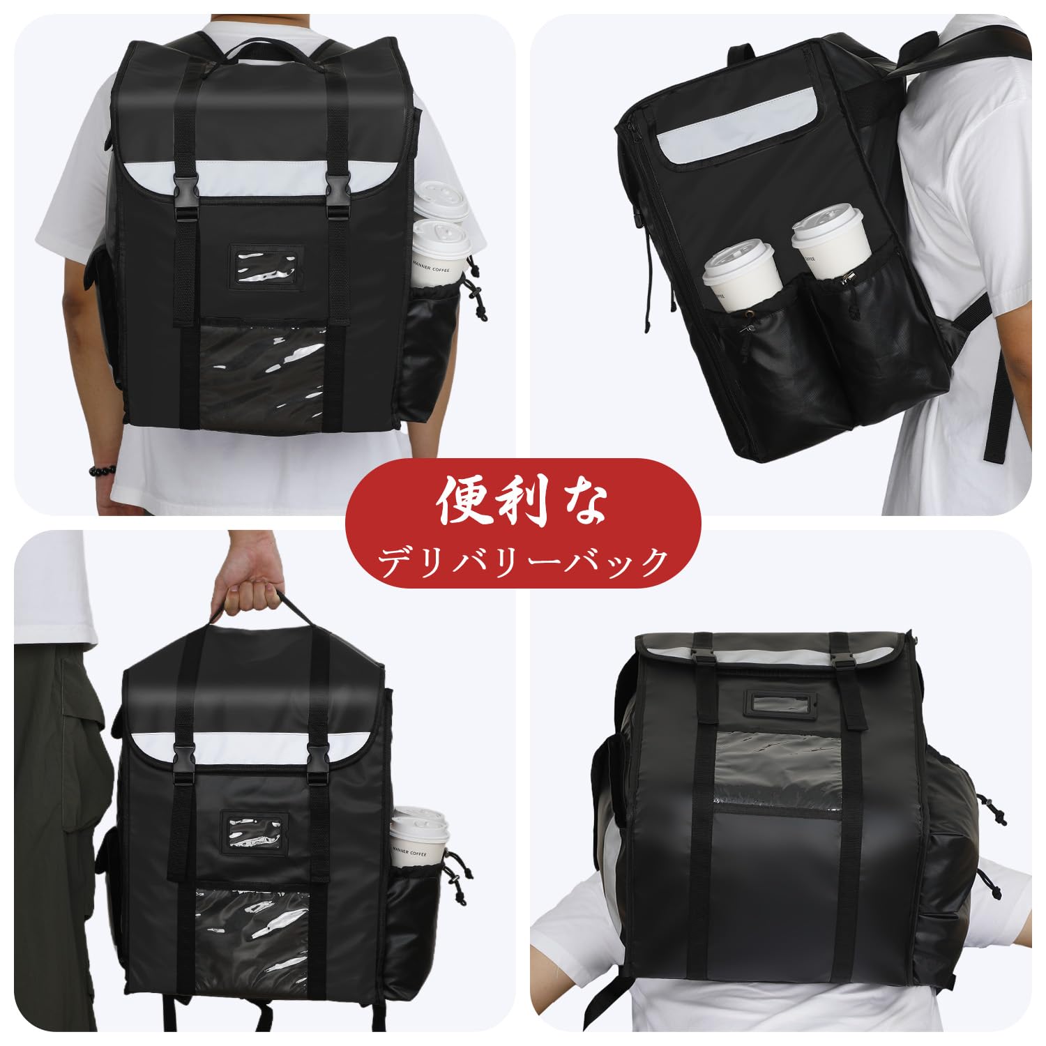 GNEGNI【拡張可能・保温保冷機能付き】デリバリーバック 配達バッグ 35L大容量 自転車対応 カップホルダー&反射ストライプ付き 防水仕様 2枚仕切り板付き 業務用フード配送バッグ