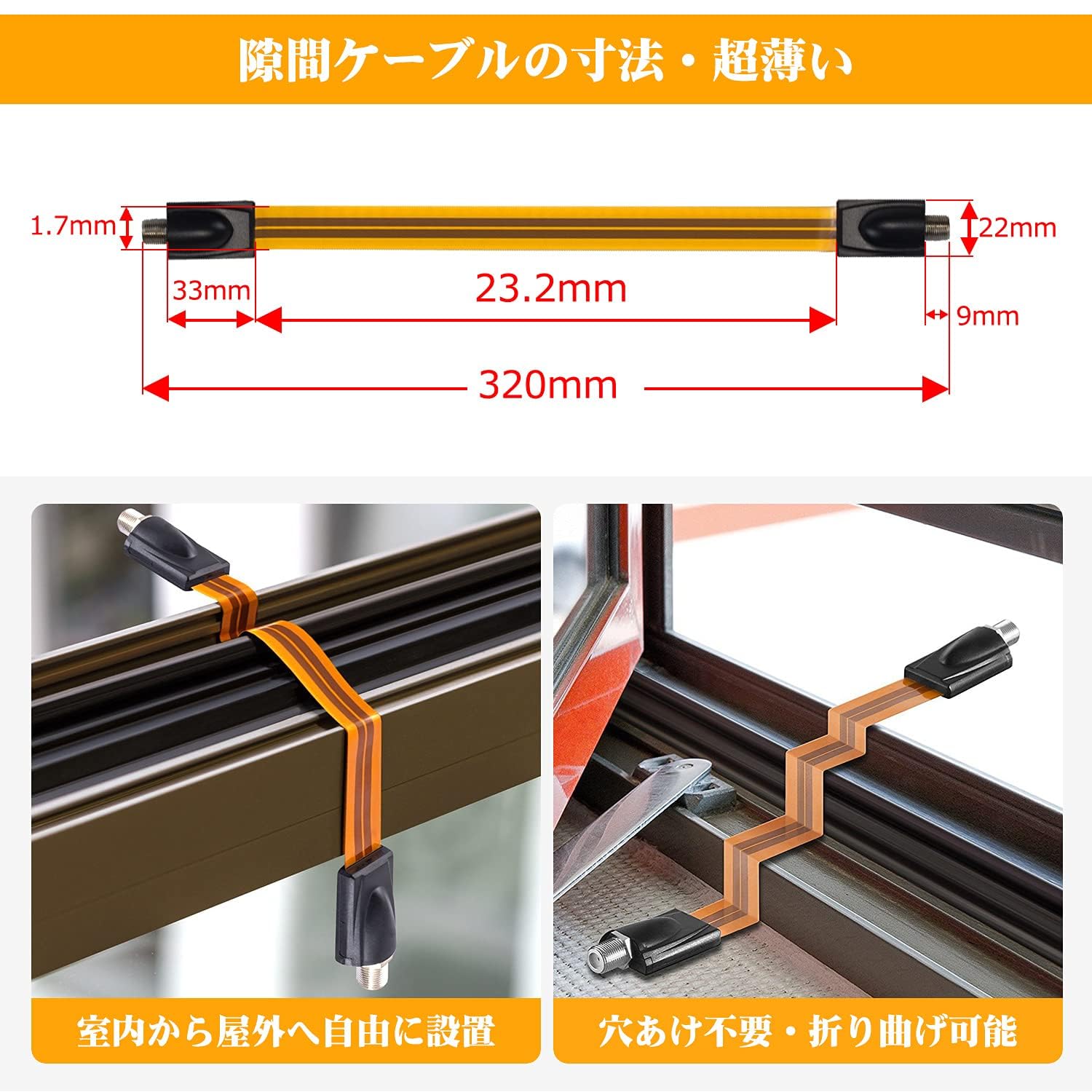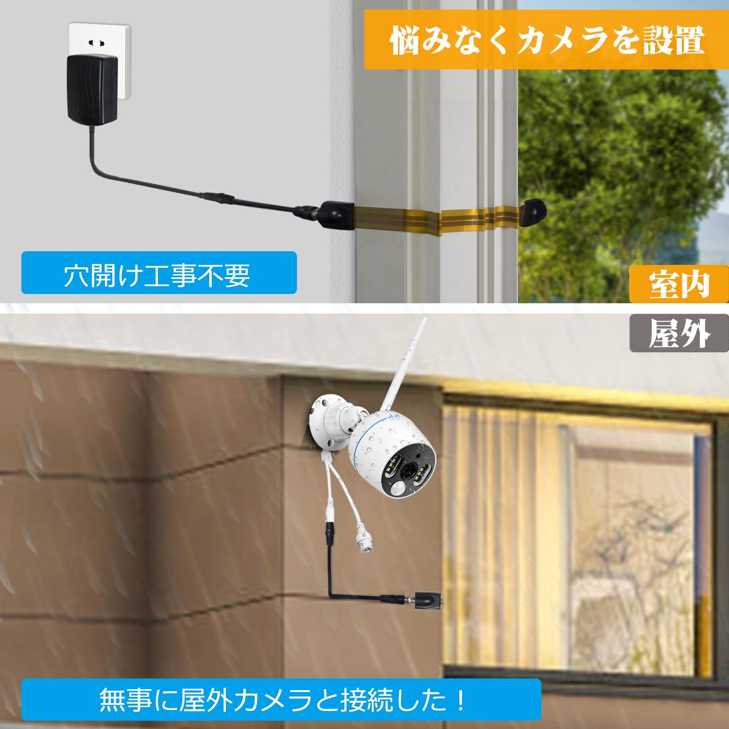 隙間ケーブル 防犯カメラ用 工事不要 0.25mm超薄 フラットケーブル DC5.5x2.1mm専用 延長コード付属 サッシ/ドア隙間対応 すきま忍者 32cm+23.6cmx2本セット