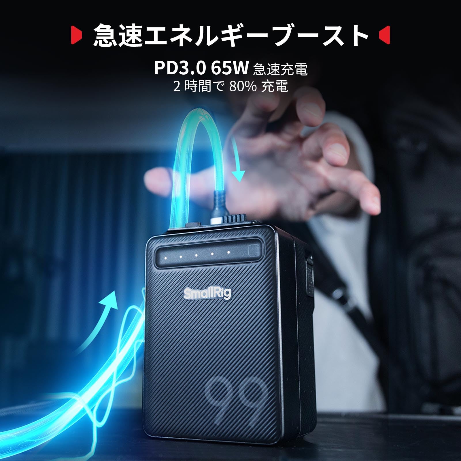 SmallRig VB99 ミニ V マウント バッテリー 6700mAh(99Wh/14.8V) 100W PD USB-C急速充電 OLED スクリーン DCポート二つ D-TAP USB-A BPインターフェース カメラ対応 ビデオカメラ対応 モニター用 スマートフォン用 コンパクト V ロック バッテリー 小型 v mount battery スモールリグ3580B