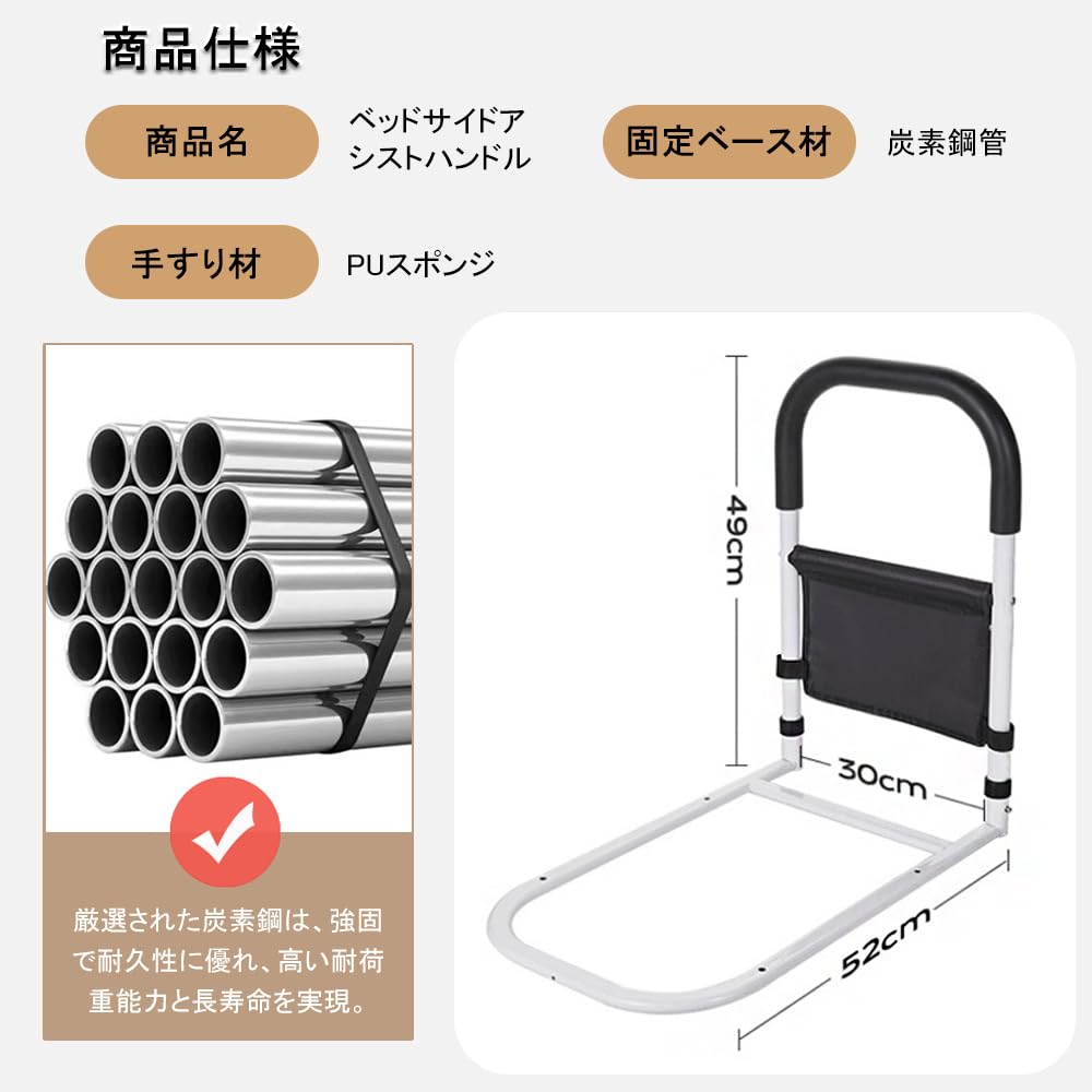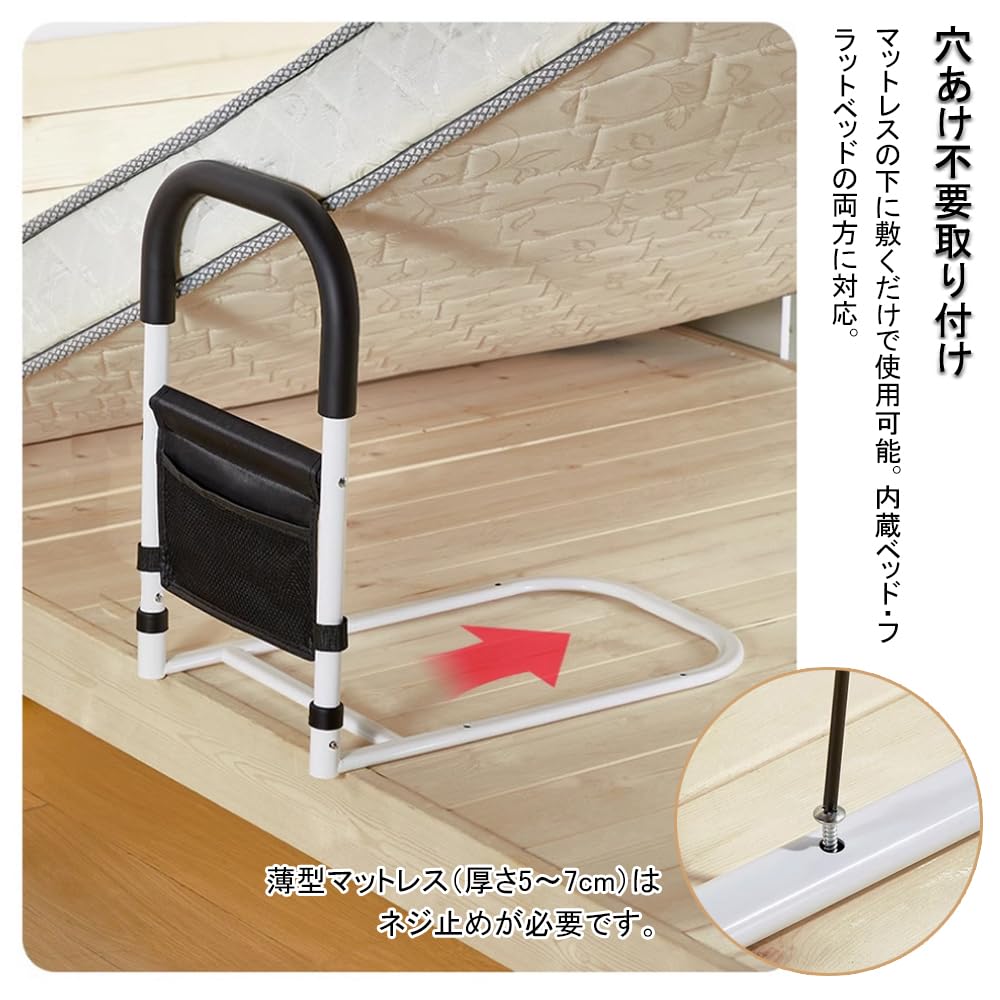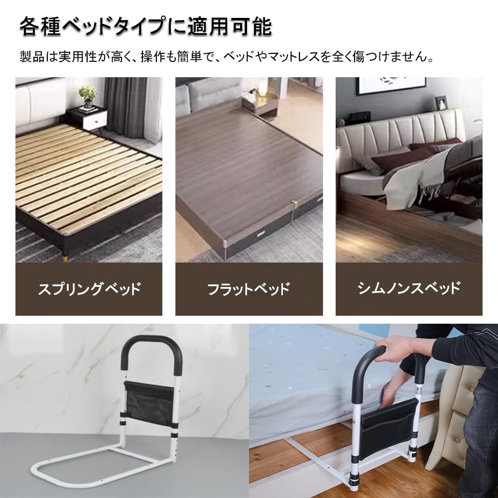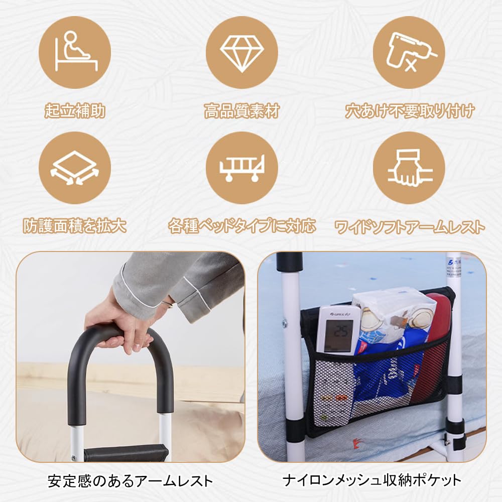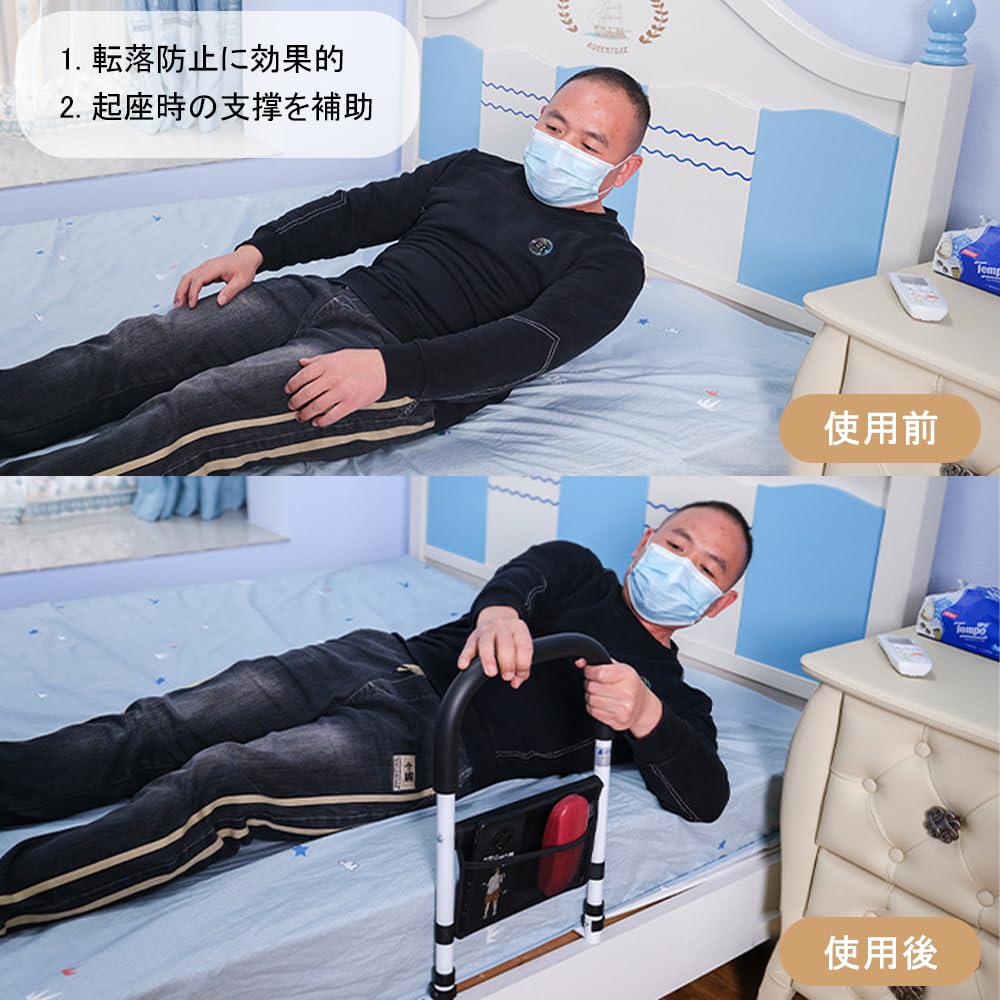 BTtime ベッドガード 起き上がり手すり ベッド柵 介護柵 手すりサイドレール 立ち上がり補助器具 起き上がり補助 ガード ベッド用手すり 収納ポケット付き 転倒防止 安定性 丈夫 簡単な組み立て 大人 高齢者向け