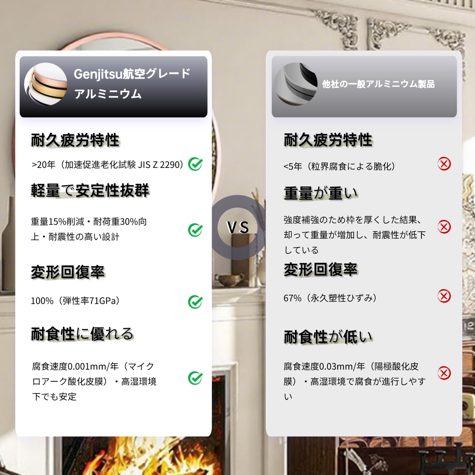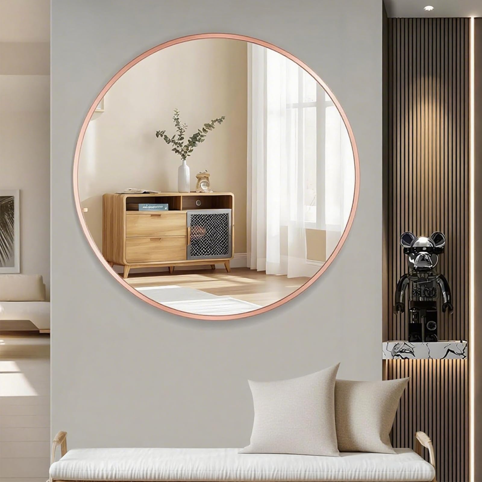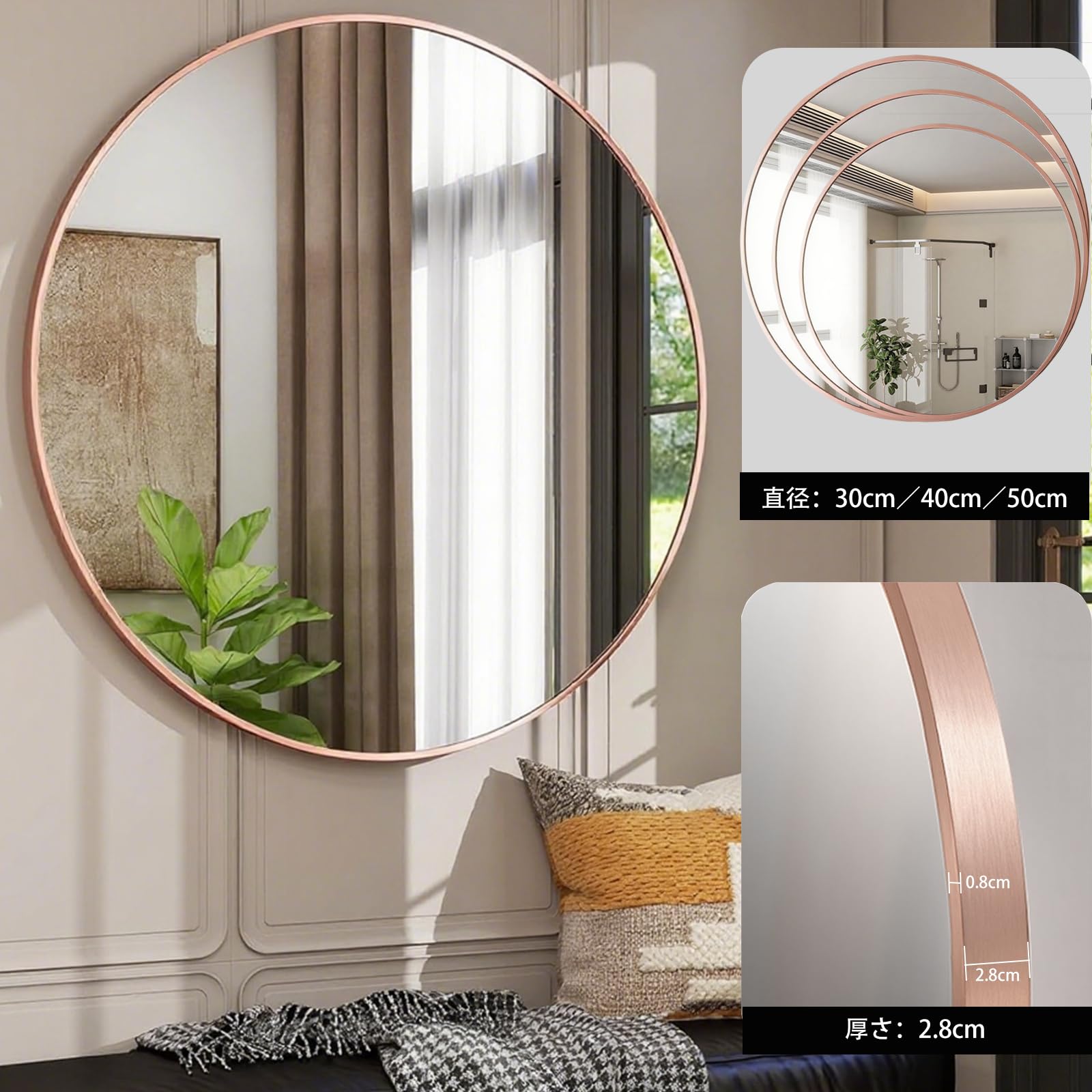 Genjitsu 鏡 壁掛けミラー 丸鏡 壁掛け鏡 洗面台 鏡 壁 洗面鏡 浴室 玄関 洗面所 鏡 化粧鏡 かがみ 円形 鏡 壁掛け 丸(ローズゴールド色,直径50cm)