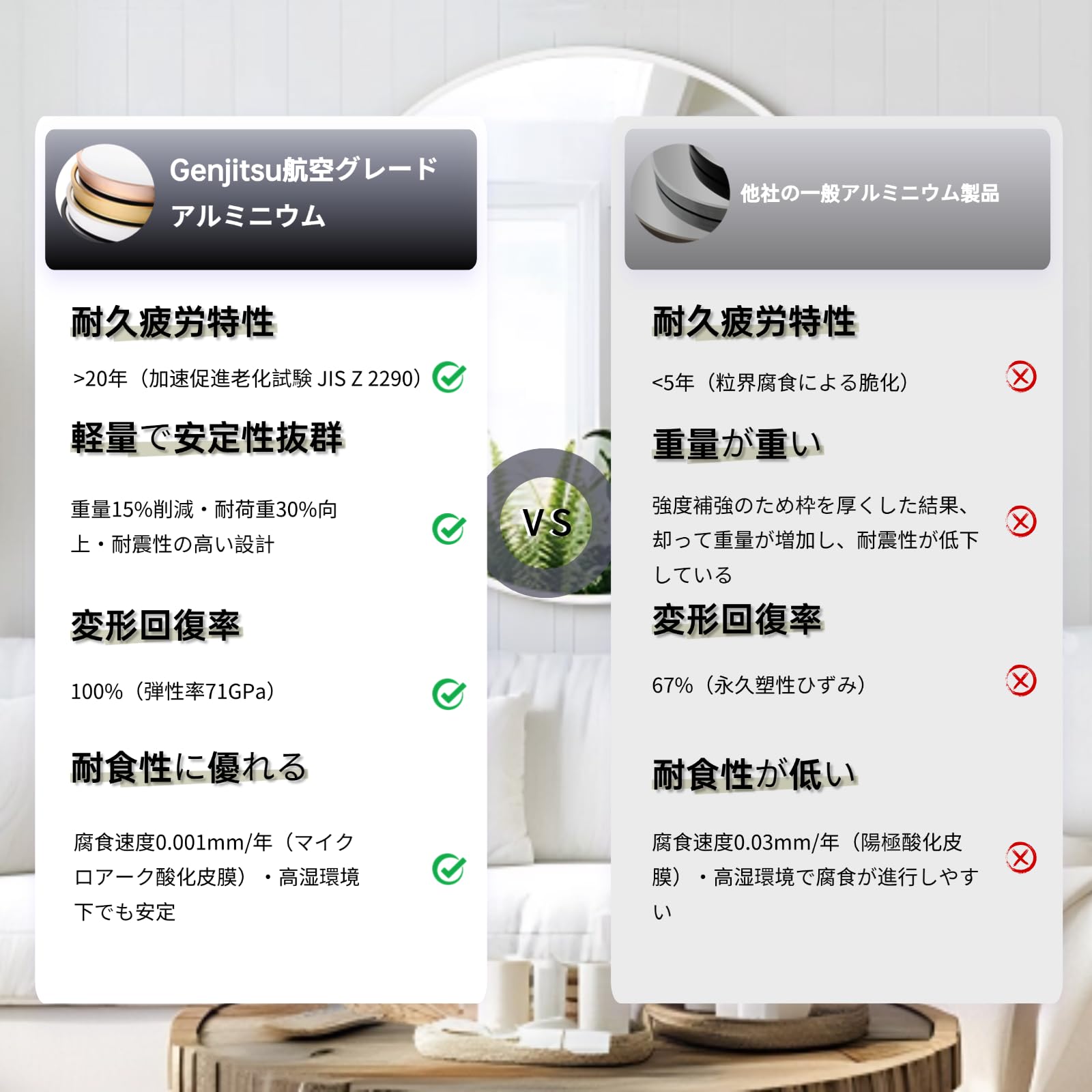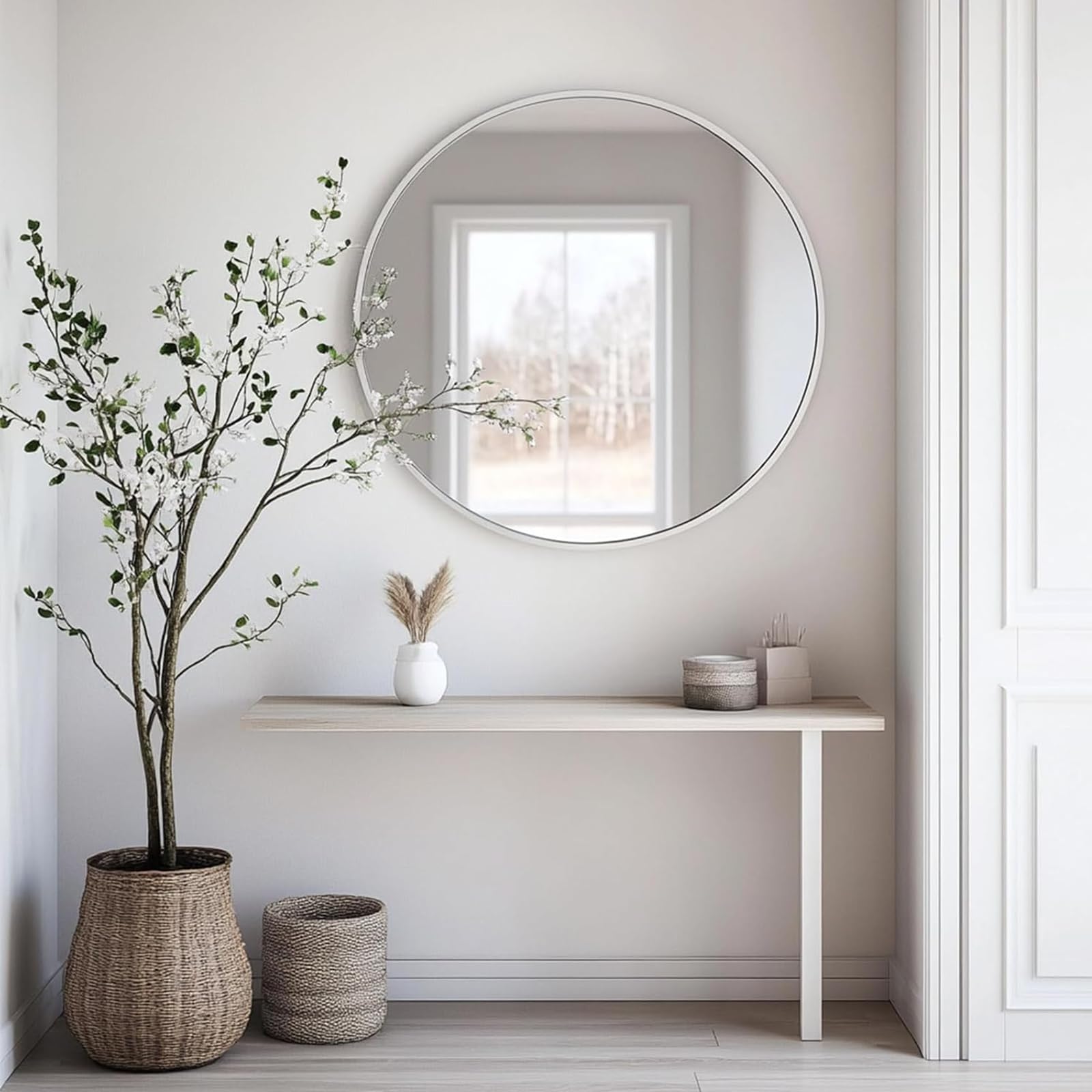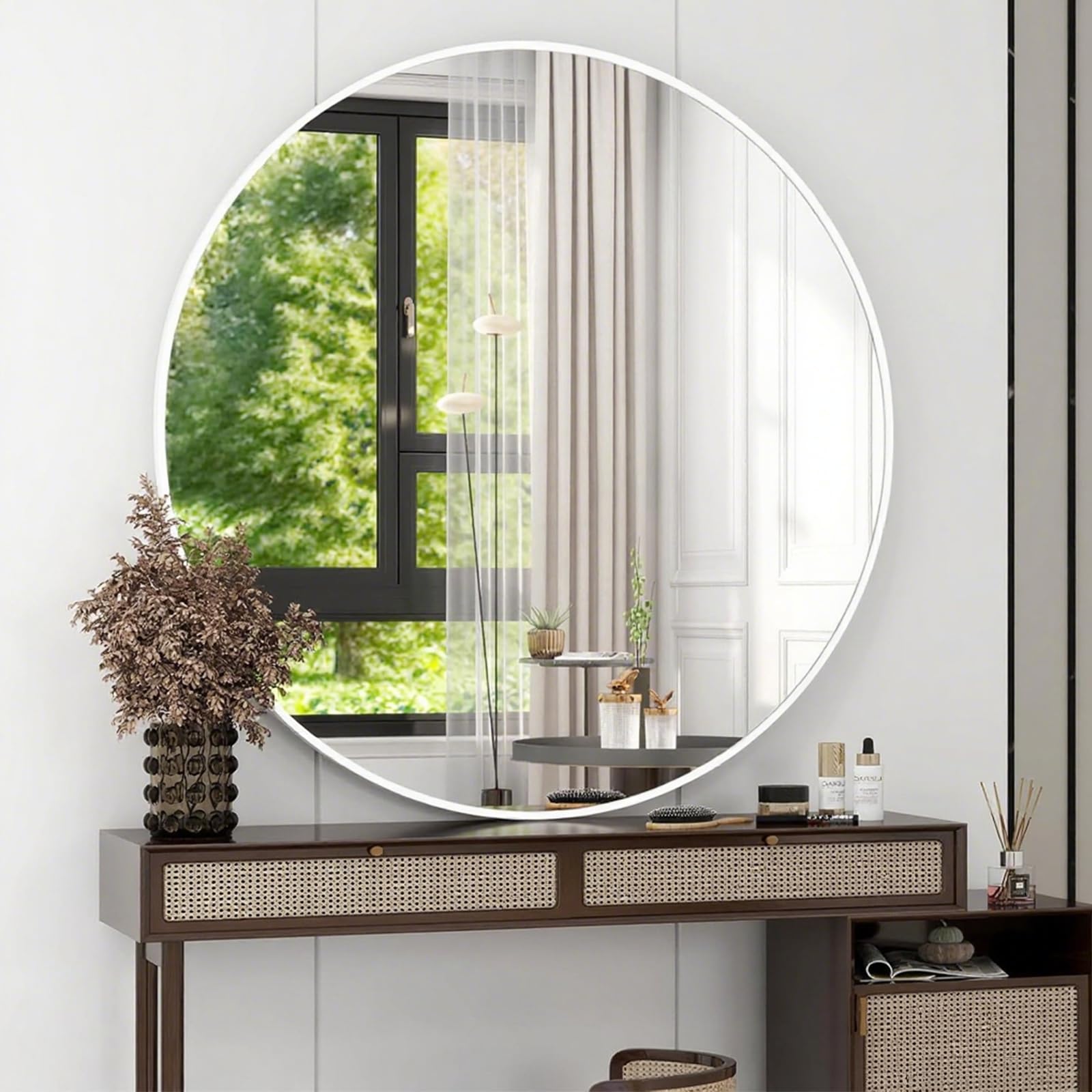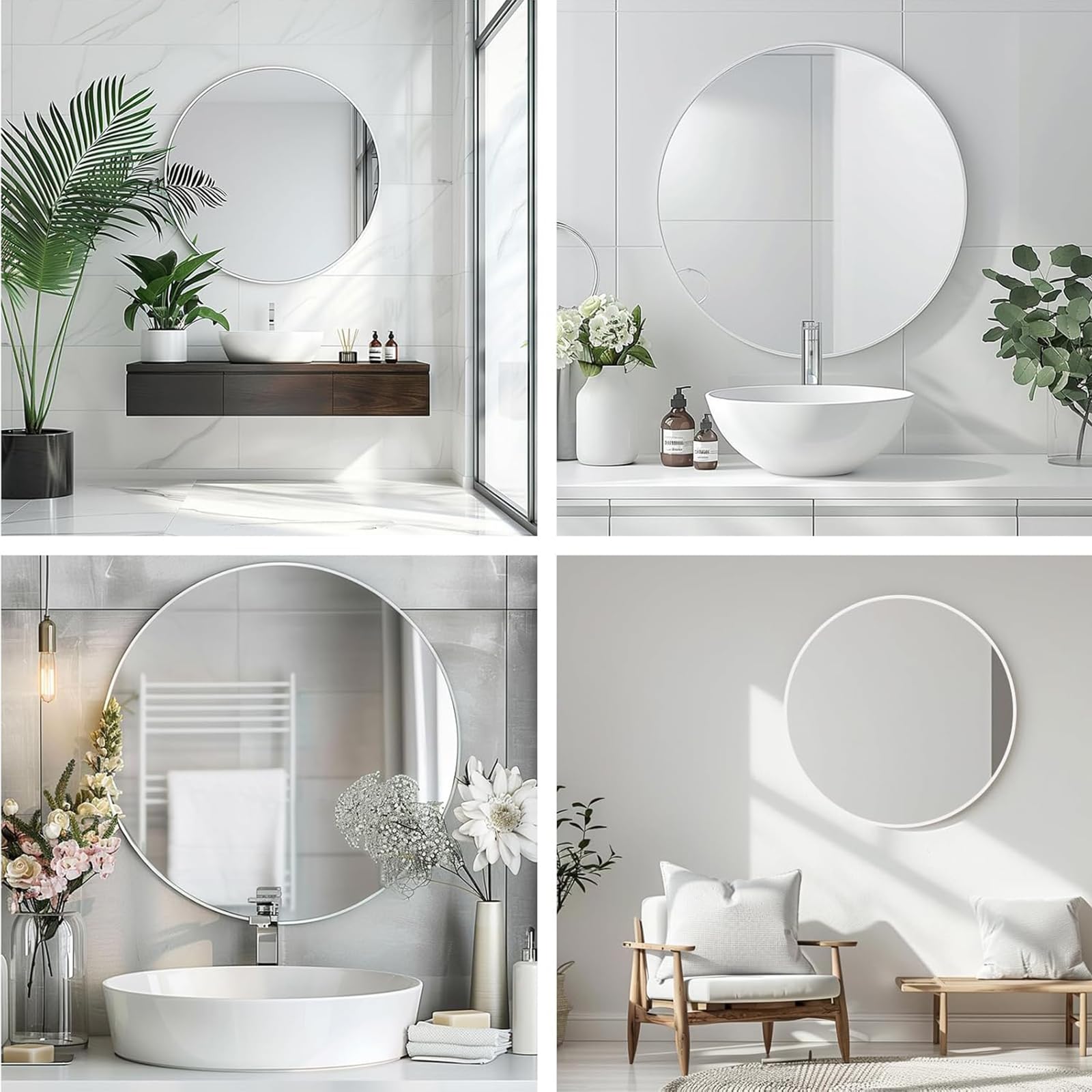Genjitsu 鏡 壁掛けミラー 丸鏡 壁掛け鏡 洗面台 鏡 壁 洗面鏡 浴室 玄関 洗面所 鏡 化粧鏡 かがみ 円形 鏡 壁掛け 丸(ホワイト,直径50cm)