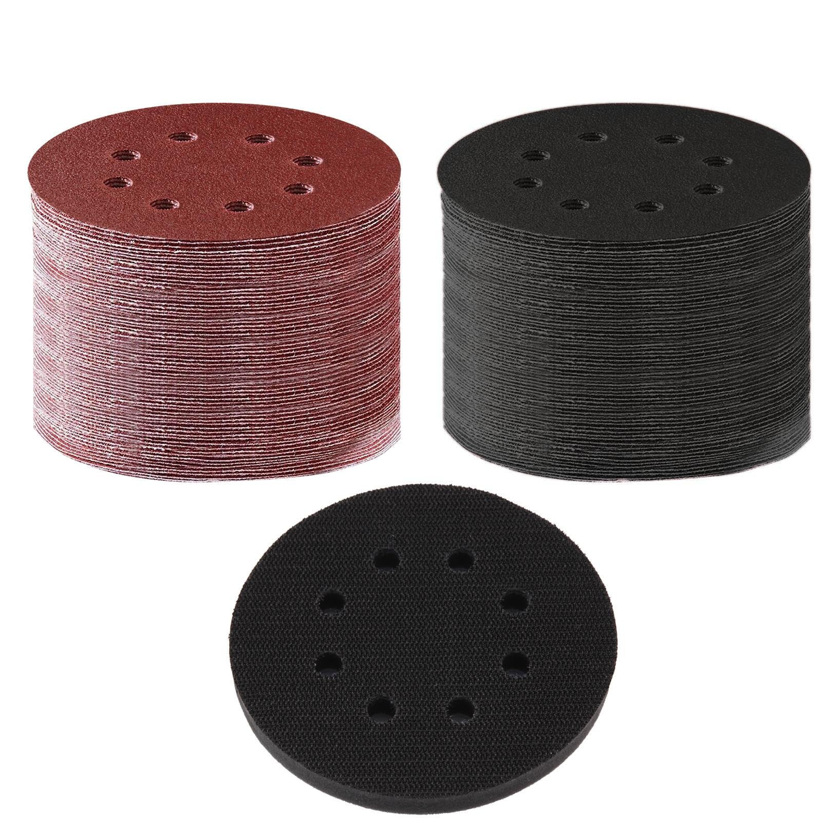 BODHTAT ディスクペーパー 125mm #150番 100枚入セット サンダー ペーパー マジック式 8穴 サンディングペーパー 丸型 サンディングディスク 電動サンダー用サンドペーパー 木工DIY作業に 車の研磨 ヘッドライトの研磨 金属磨き用