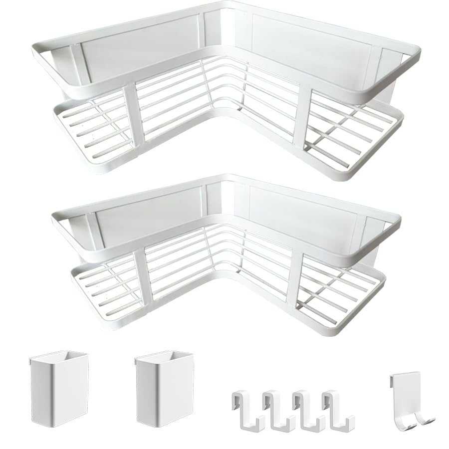HWSHOW 浴室ラック コーナー 三角 お風呂 ラック 強力粘着固定 ステンレス シャワーラック バスルーム 洗面所 収納ラック 整理