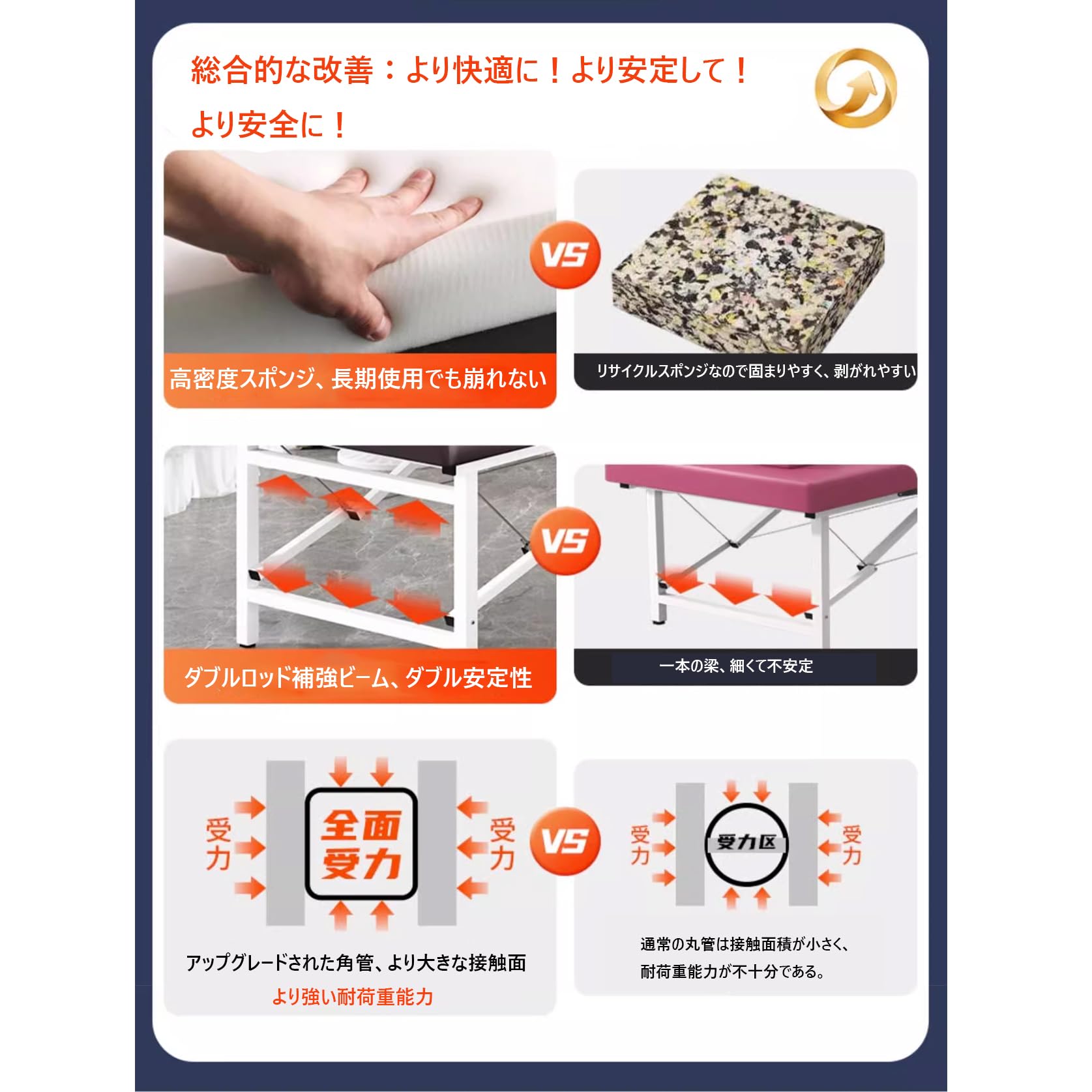 Hynbdesマッサージベッド 軽量 折りたたみ可 調節可能 250kg耐荷重 高密度スポンジ 快適施術用 持ち運び便利 ポータブル エステサロン向け 理療師推奨 リラクゼーション用 美容院用具 プロ用 ホームスパ-185*70*60ピンク