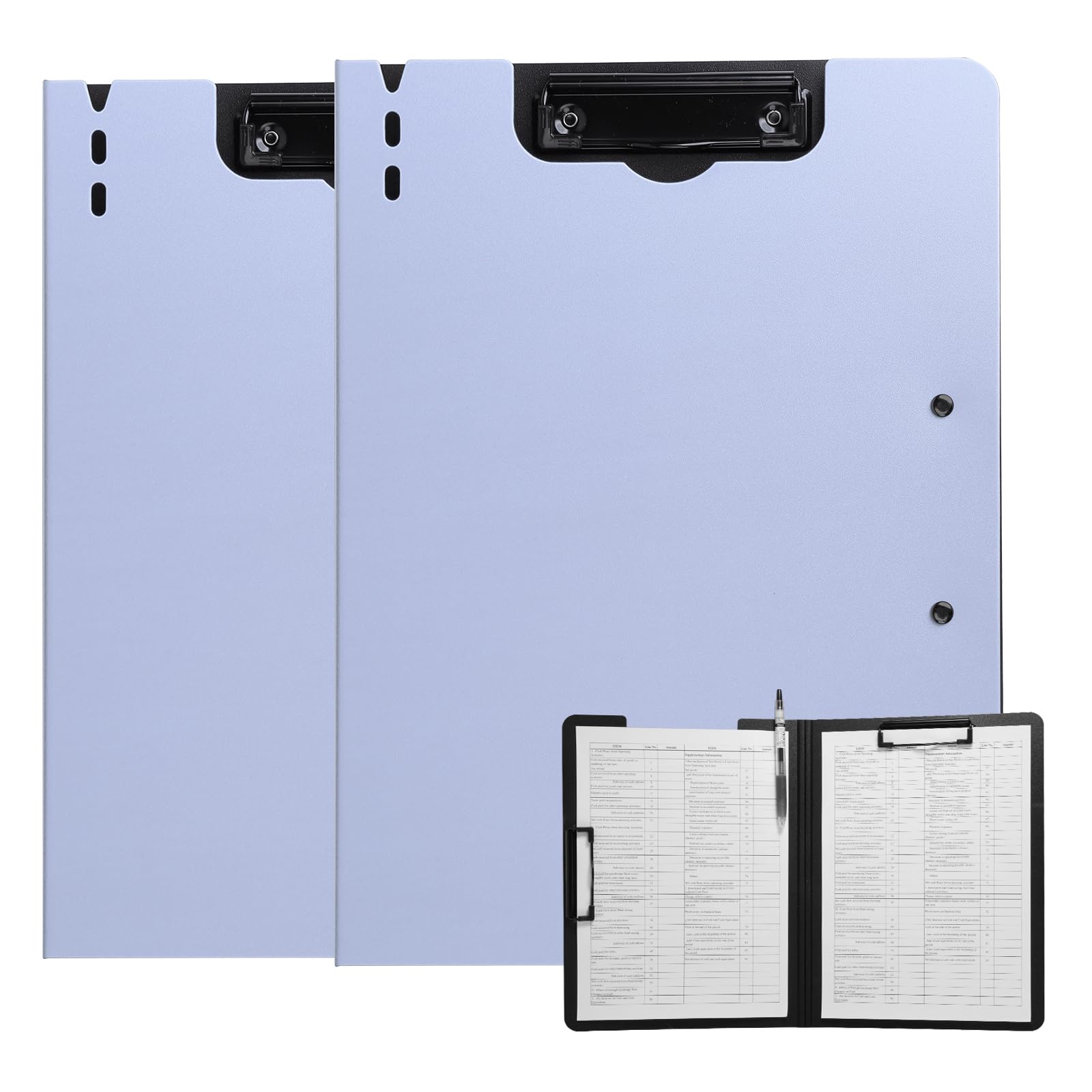FRETONBA クリップボードフォルダ a4 2個セット バインダー 二つ折り ダブルクリップ 1.8mm厚板 書きやすさ 薄型 会議パッド 防水ファイル保護 折り畳み式 ティーチング用 書類ホルダー おしゃれ 軽量 パープル