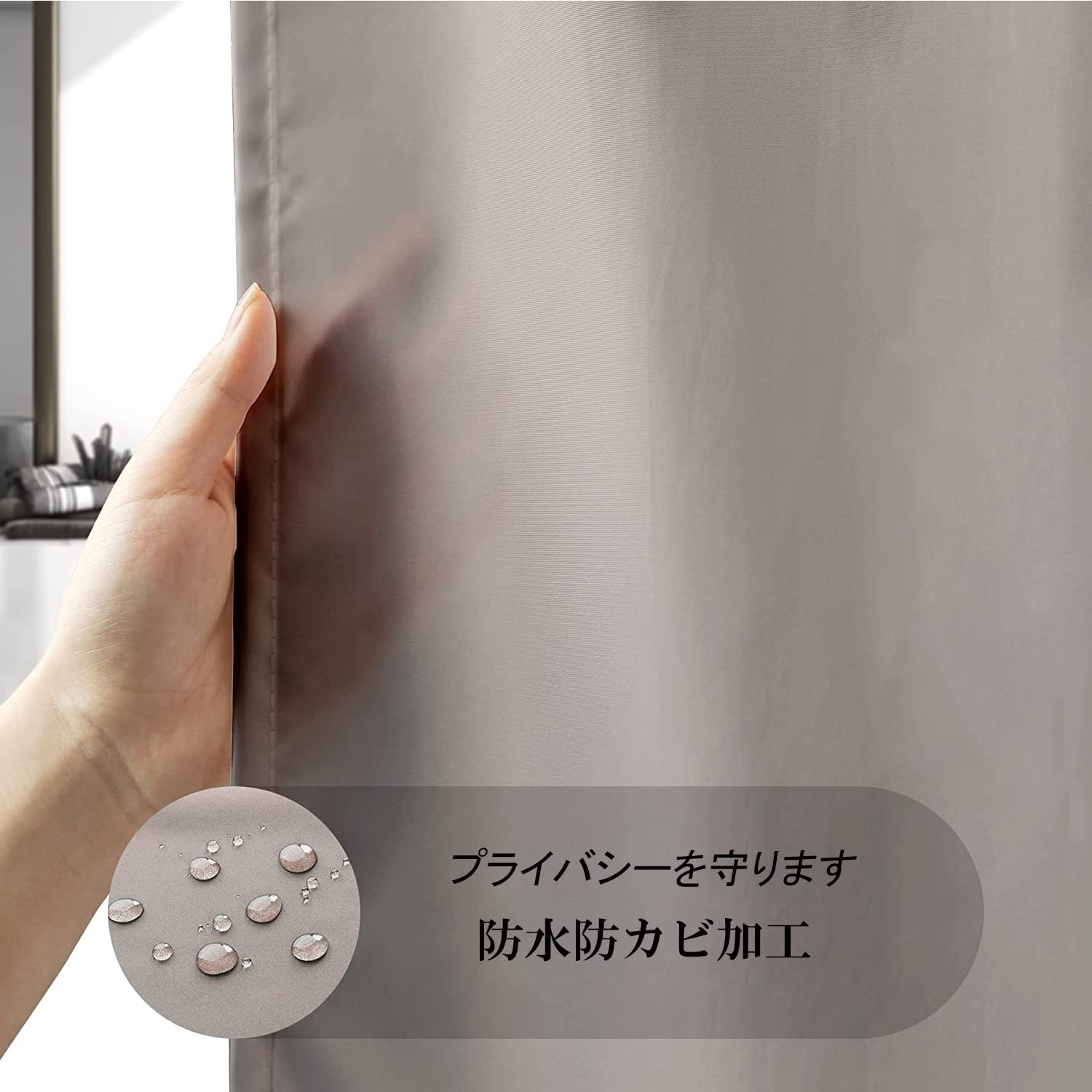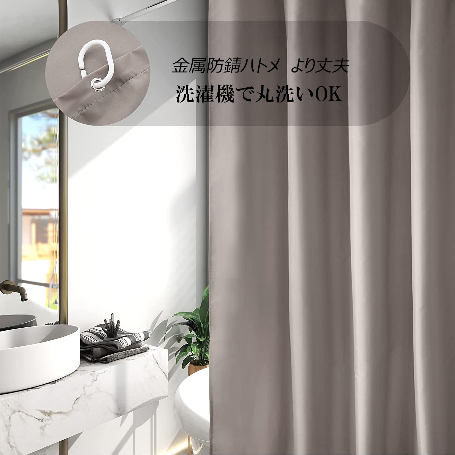 AooHome シャワーカーテン 90x150cm 目隠し 遮像 防カビ 防水 お風呂用カーテン 軽量 速乾 リング付き 無地 ベージュ