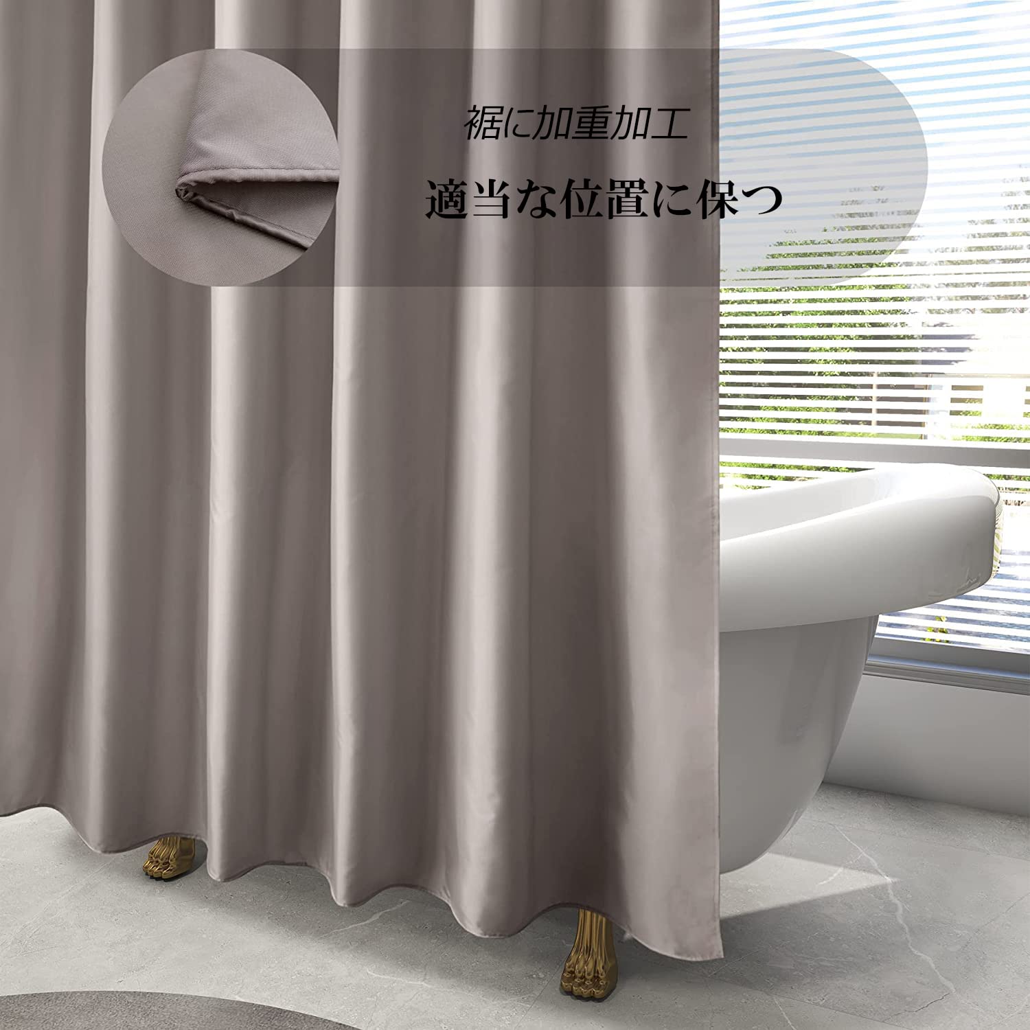 AooHome シャワーカーテン 目隠し 遮像 防カビ 防水 120cm幅 180cm丈 バス用品 ユニットバス ロング お風呂用カーテン 軽量 速乾 リング付き 無地 白 ブラウン
