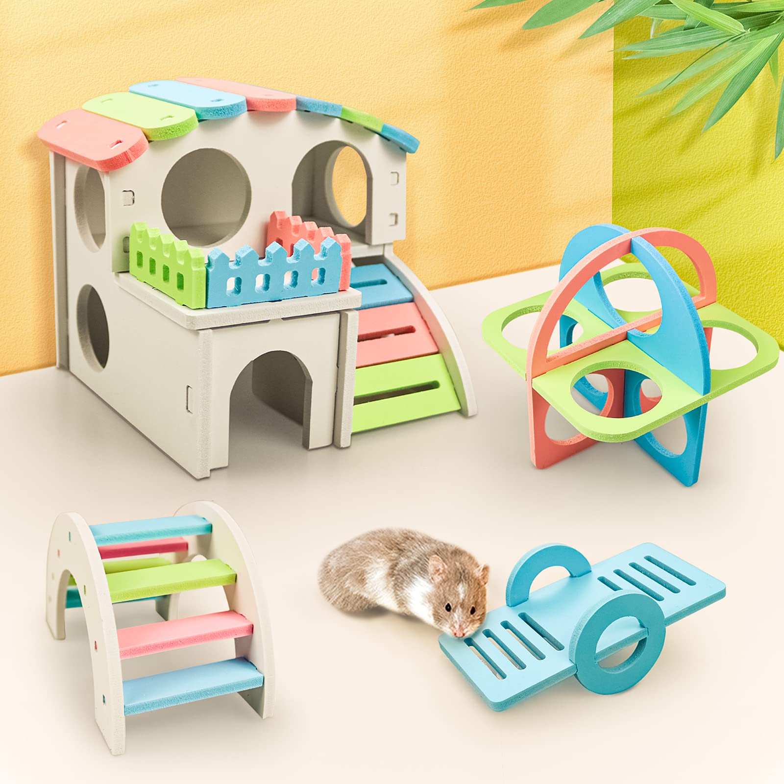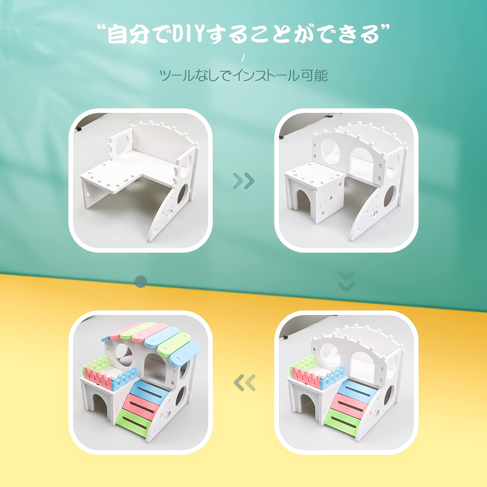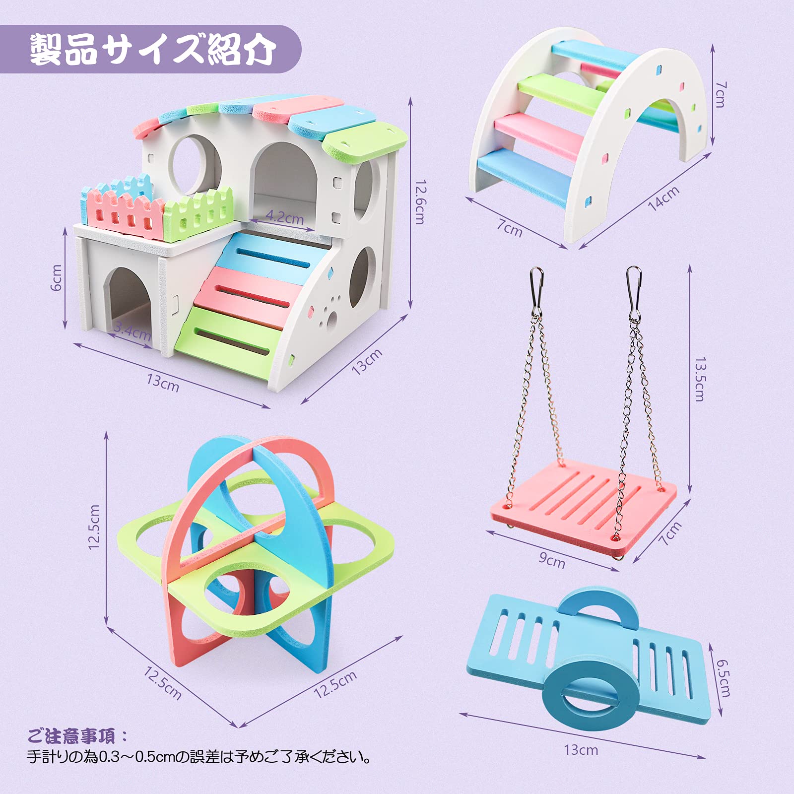 5点セット ハムスター ハウス ハムスター ケージ 小動物用 おもちゃ 面白い 玩具 レインボーブリッジ ブランコとPVCシーソー ペットスポーツ かわいい 小屋 遊び場 ストレス解消 運動不足解消 おしゃれ 複数カラー (H03)
