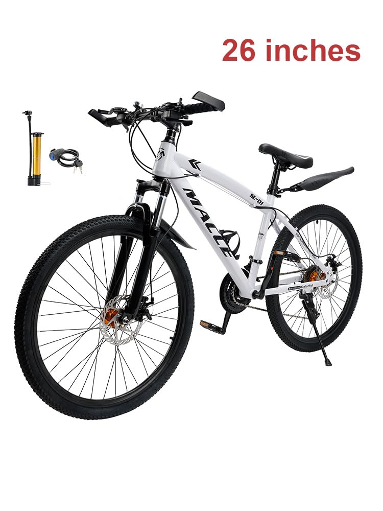 Artudatech マウンテンバイク マウンテンバイク 自転車 ファットバイク 26インチ フルサスマウンテンバイク 27段変速 クロスバイク デュアルディスクブレーキ 高炭素鋼フレーム 自行车 ロックアウト機能付き 自転車 クロスバイク 9段変速チェーン ホワイト