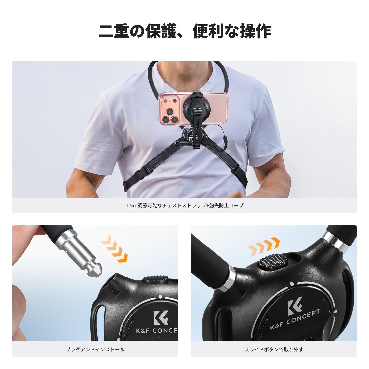 【2025新登場】 K&F CONCEPT スマホ ネックレスマウント 首掛けスマホホルダー 【マグネット式とクリップ式の2in1】 Magsafe対応 スマホ ネックホルダー 超強力磁力 多角度調整可能 66cm延長設計 気垫クッション&胸ベルト&スマホストラップ付き 落下防止 旅行 釣り Vlog撮影用 Android/iPhoneに対応 GoProにも対応