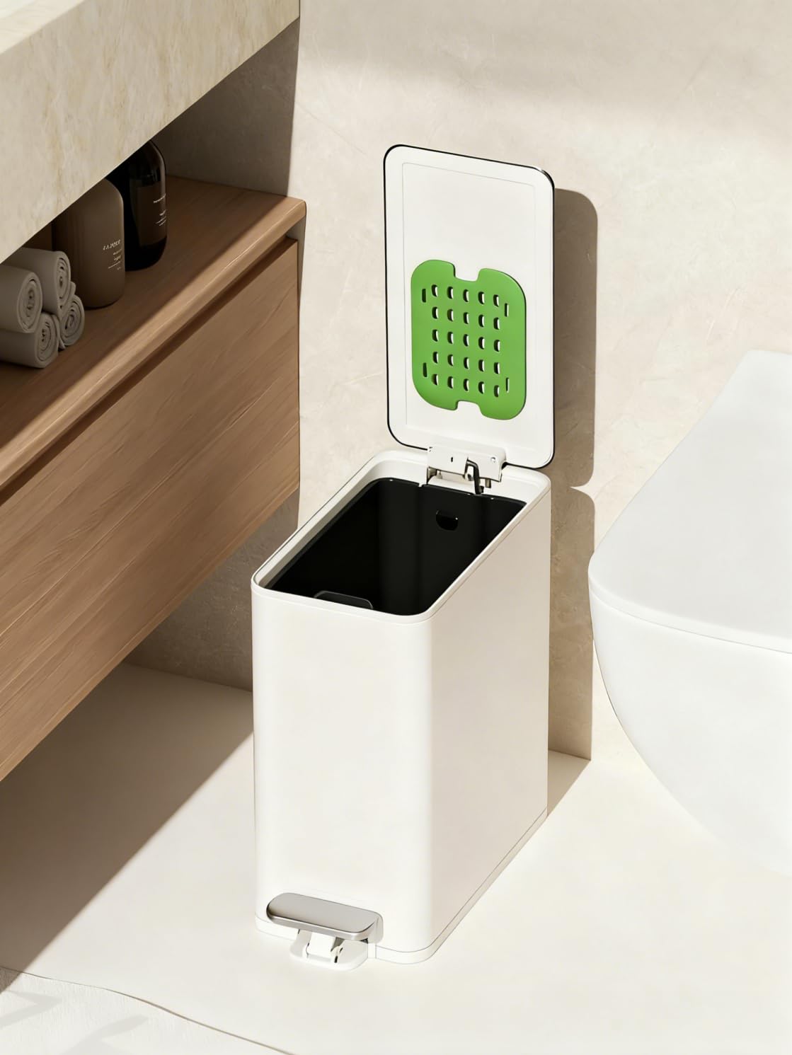 ELECTRO-WEIDEWORLD ゴミ箱 ふた付き スリム 12リットル おしゃれ ゴミ袋見えない 洗面所用 密閉 防臭 ホワイト オムツ トイレ 分別ゴミ箱 蓋付きごみ入れ 家庭用 部屋用 薄型 角型 小型 省スペース (ホワイト-12L)