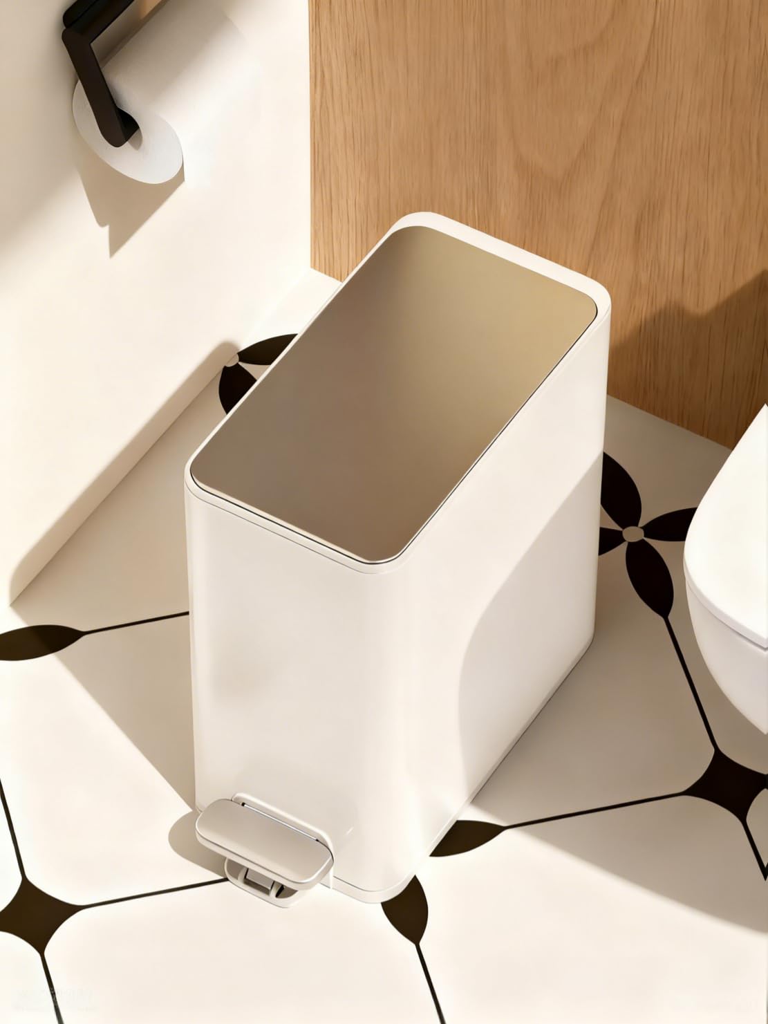 DJLEE 5リットルメタッル制 ゴミ箱 5Lダストボックス 蓋つきゴミ箱 ペタル式ゴミ箱 おしゃれ 白いトイレゴミ箱 メタル製ゴミ箱 生ごみ キッチン小さいゴミ箱 バスルーム ホワイト ホワイト