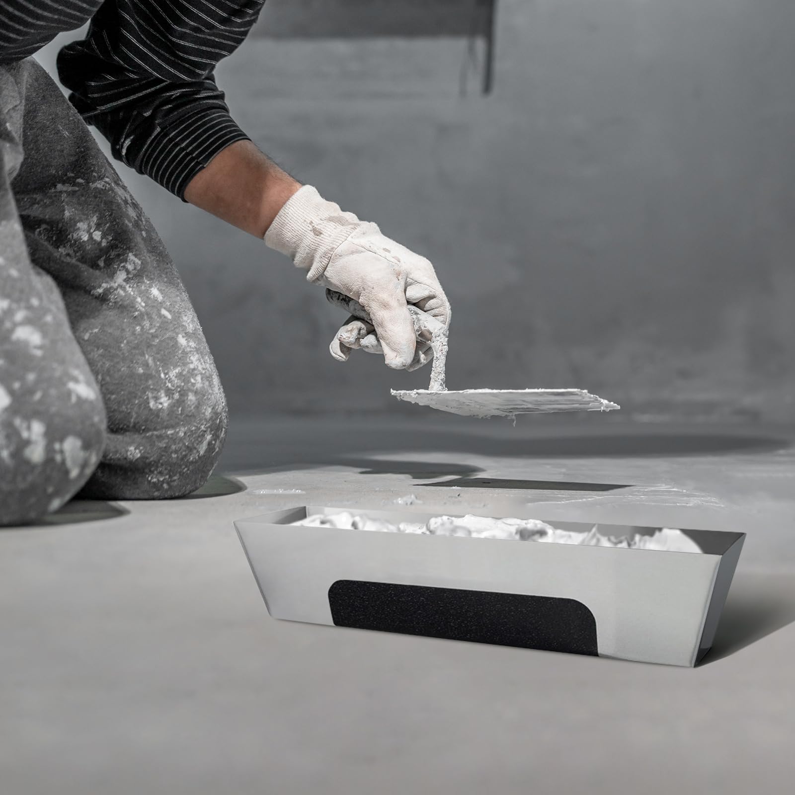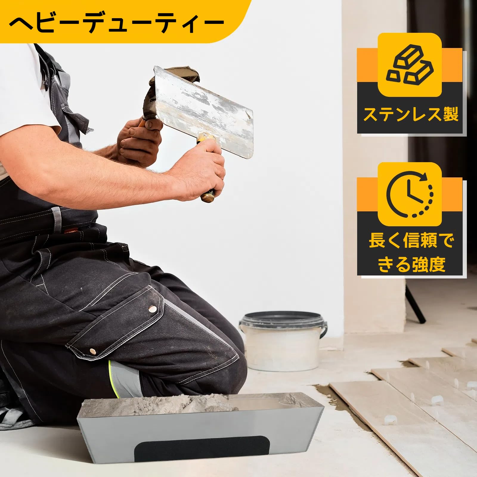 Yajuyi ステンレススチールマッドパン/ドライウォールパテ用 マッドパン/泥パン左官左官継手剪断側面ヘビーデューティ泥パン 乾式壁石積みツールトレイバケット滑り止めパッド付き, 12インチ
