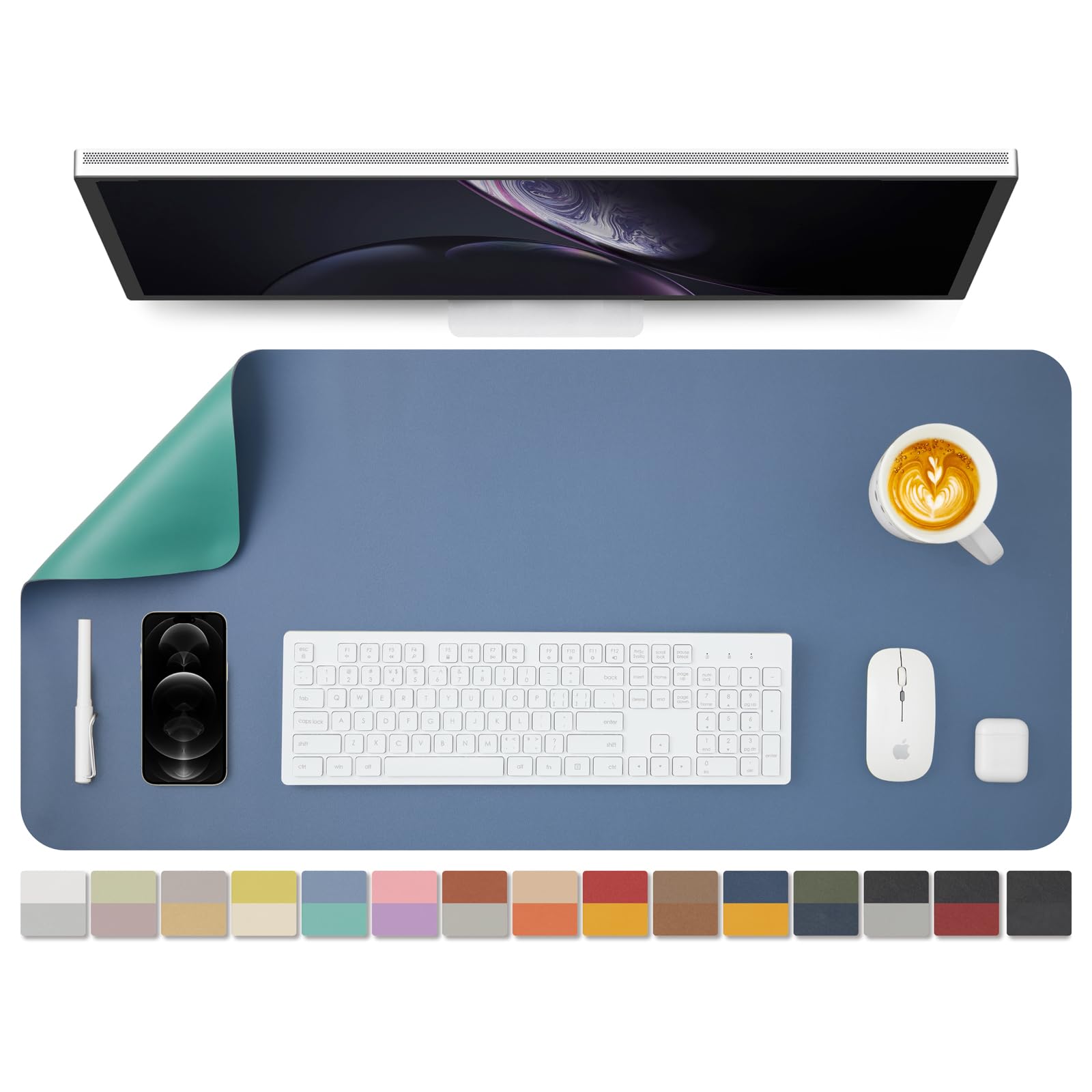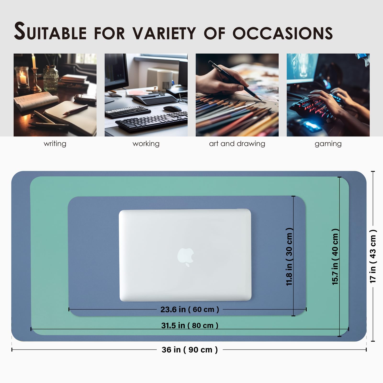 両面PUデスクマット、大型マウスパッド、デスクプロテクター、防水キーボードマット、オフィス/家庭/ゲーム/装飾に適した(青い+緑、90cm*43cm)