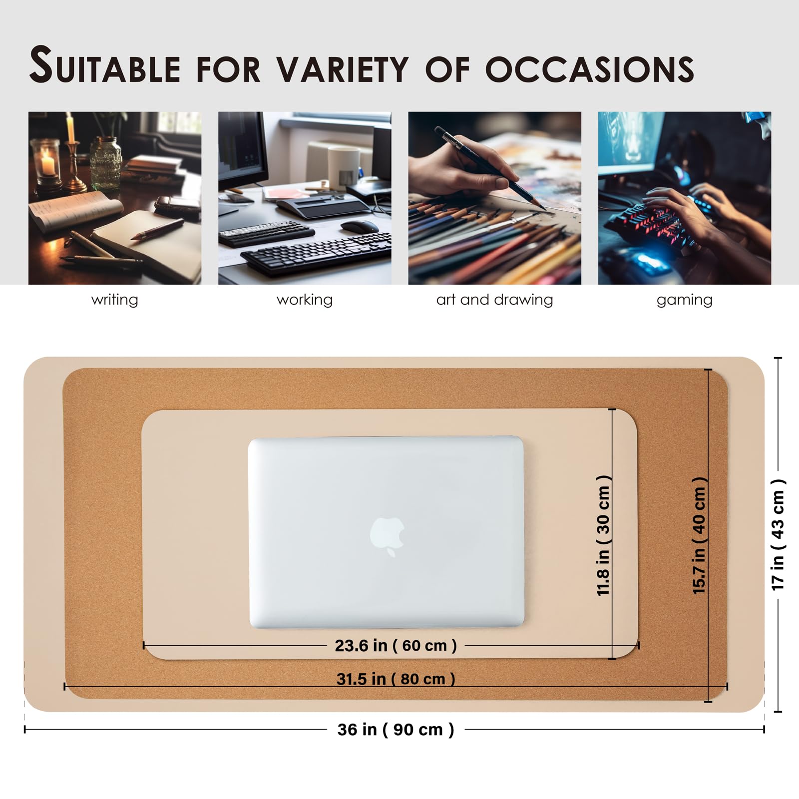 大型ナチュラルコルク&レザーデスクパッド、エコデスクマット、両面デスクプロテクター、防水キーボードパッド、オフィス/ホーム/ゲーム/装飾用デスクマウスパッド(ダークアンズ、60cm*30cm)