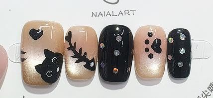 ブラックピンク ドゥードルグラフィティ手绘 高級ニッチネイルウェア 短方形用(M)