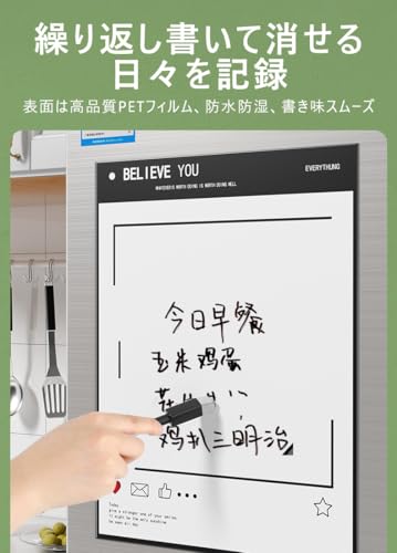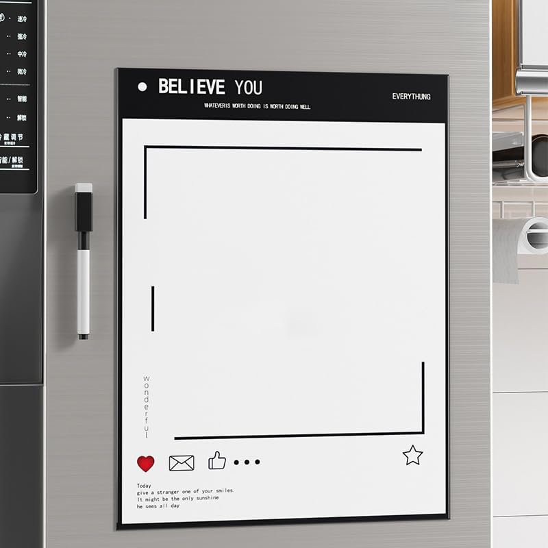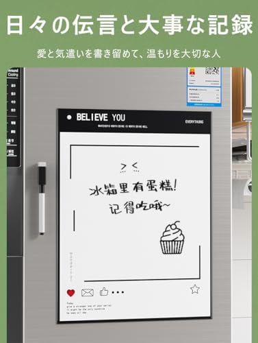 Ponko マグネットホワイトボード 可擦書き メモボード 冷蔵庫用 3種類選択(ブラック&ホワイト/カラフルToDoリスト/月間カレンダー) 水性ペン付属 磁石ボード 予定表 スケジュール 管理 メモ 再利用可能 (ブラック&ホワイト)