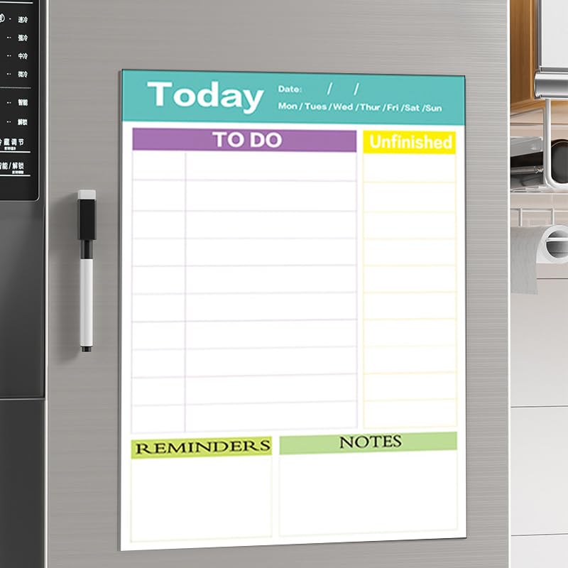 Ponko マグネットホワイトボード 可擦書き メモボード 冷蔵庫用 3種類選択(ブラック&ホワイト/カラフルToDoリスト/月間カレンダー) 水性ペン付属 磁石ボード 予定表 スケジュール 管理 メモ 再利用可能 (カラフルToDoリスト)