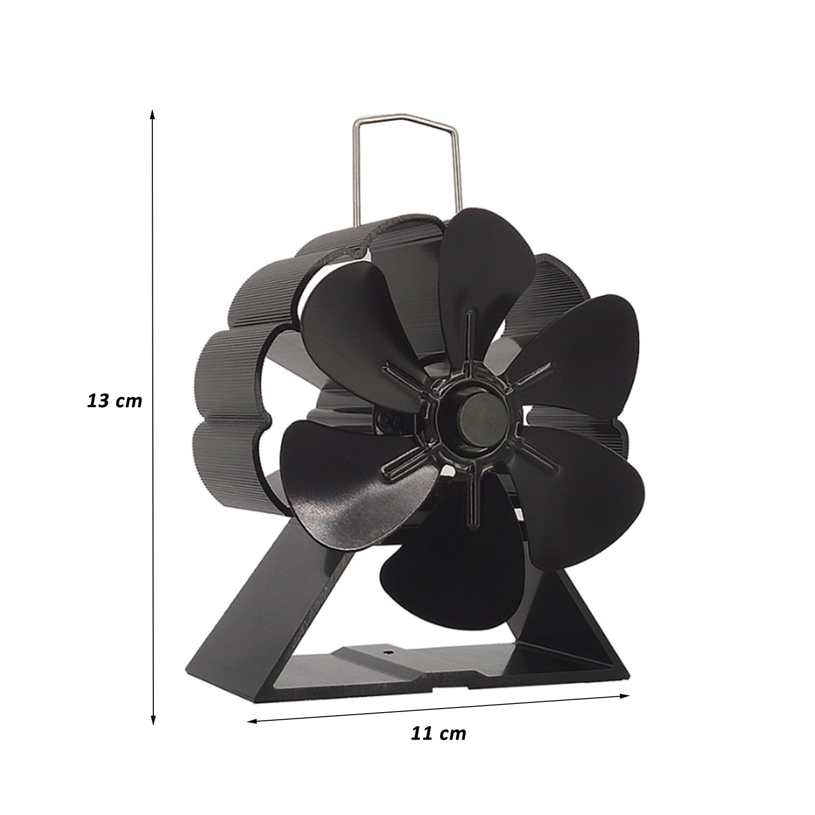 QIYUNI ストーブファン|薪ストーブ/石油ストーブ/暖炉通用 電源不要 過熱保護|静音 省エネ 空気循環 6 枚ブレード防寒対策用品 (黒)