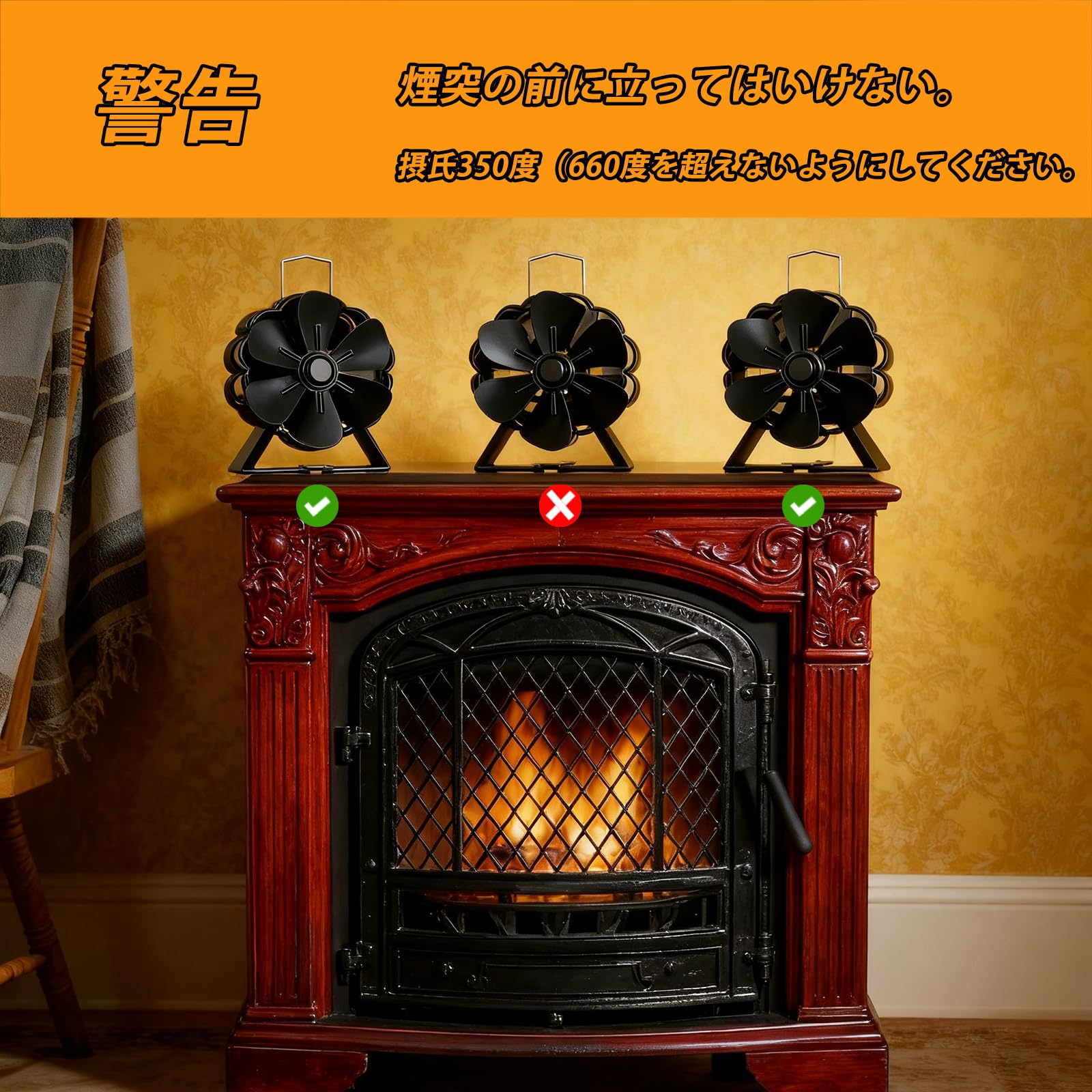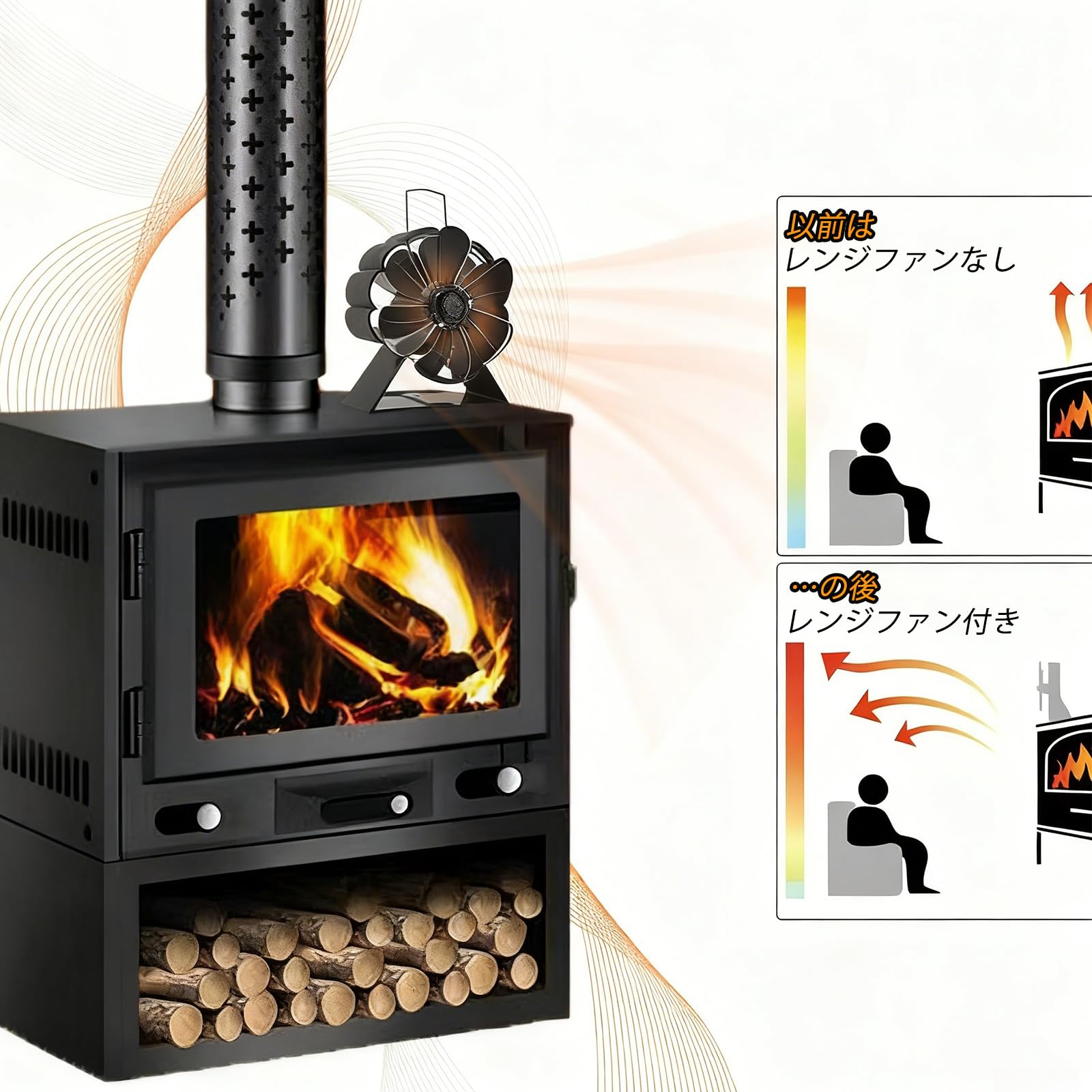 ストーブファン 薪ストーブ用 8枚羽根 電気不要の暖炉ファン 熱供給 火力熱炉 火力熱炉ファン 省エネ 静音 エコストーブファン ガスストーブ ペレットストーブ アルパカストーブ用 空気循環 暖房効率アップ