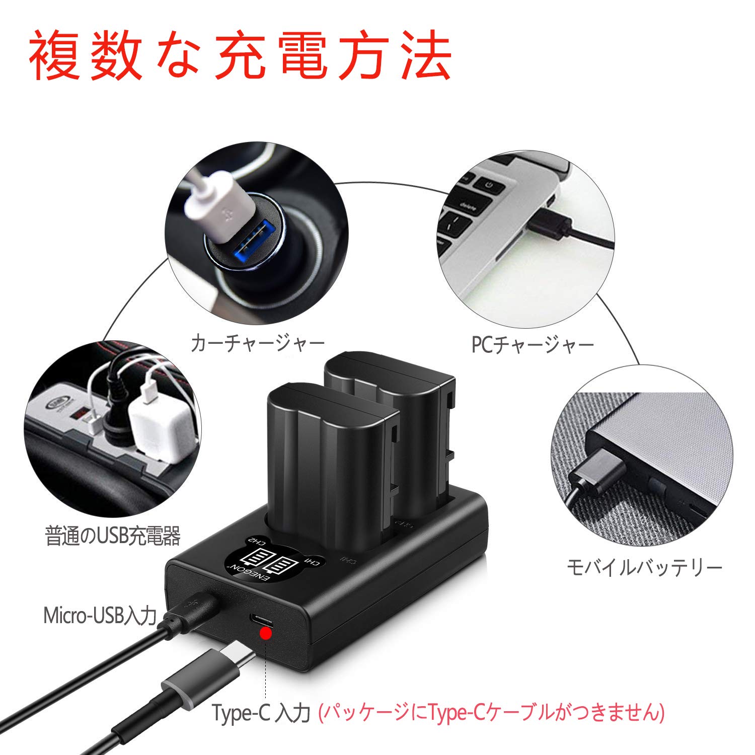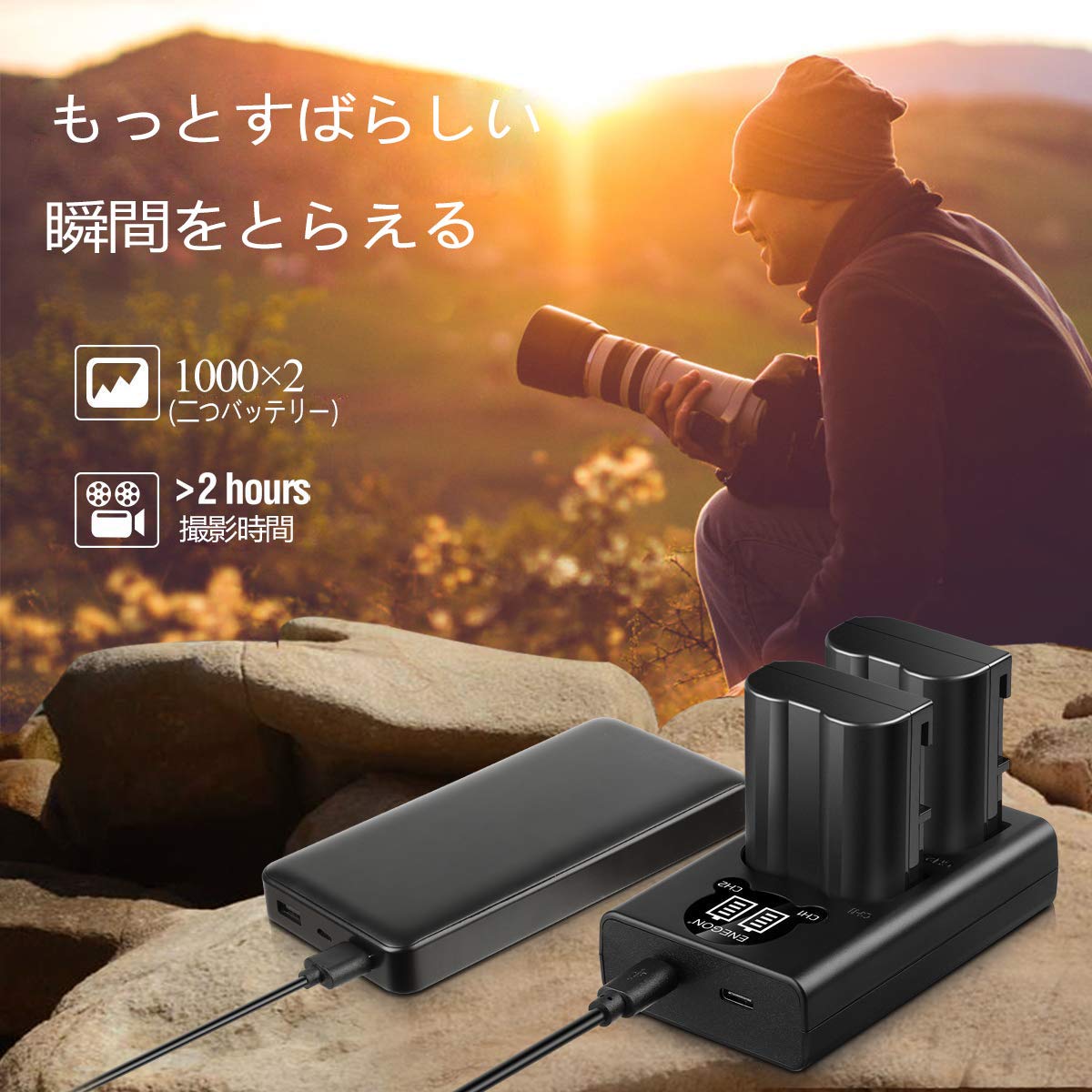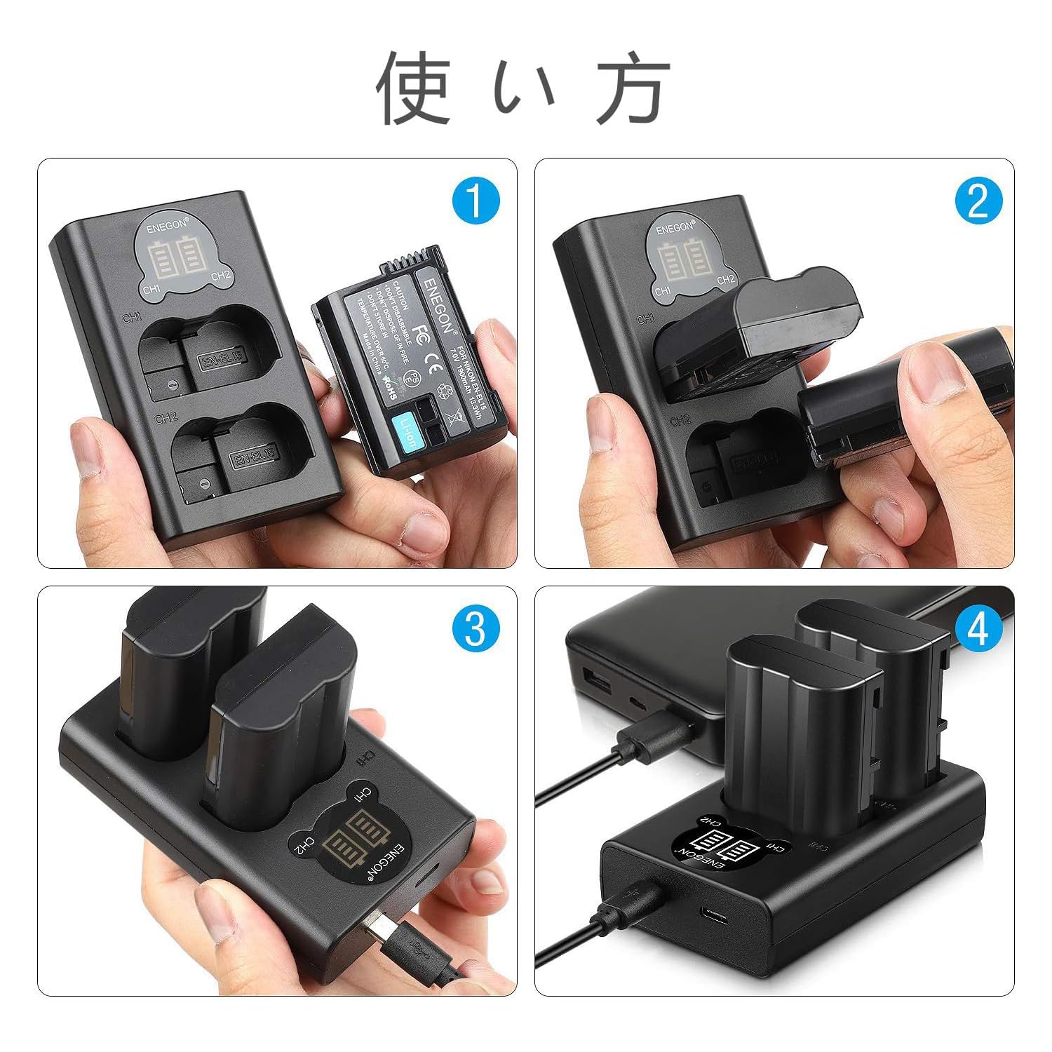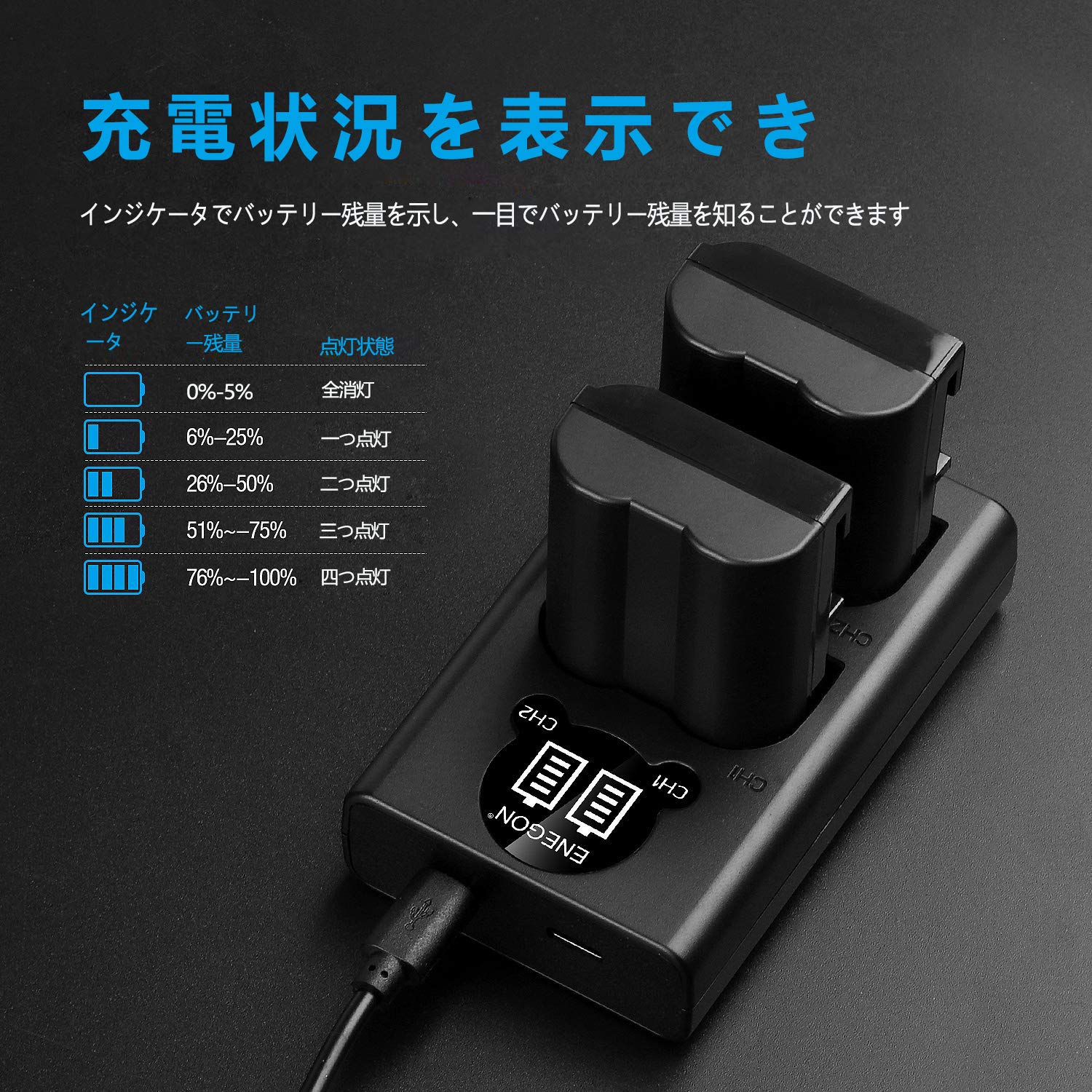 ENEGON EN-EL15C EN-EL15CB EN-EL15CA 互換バッテリー(2個) とスマートLEDデュアル充電器 Nikon Zf,Z8,Z7,Z7II,Z6,Z6Ⅲ,D7500 D7000, D7100, D7200 D500, D600, D610, D750,D780 D800, D810,D850 など対応