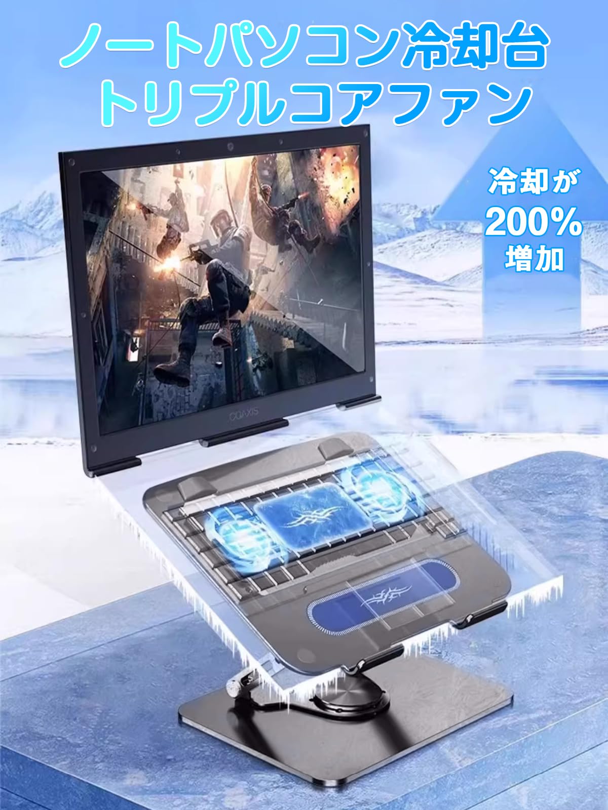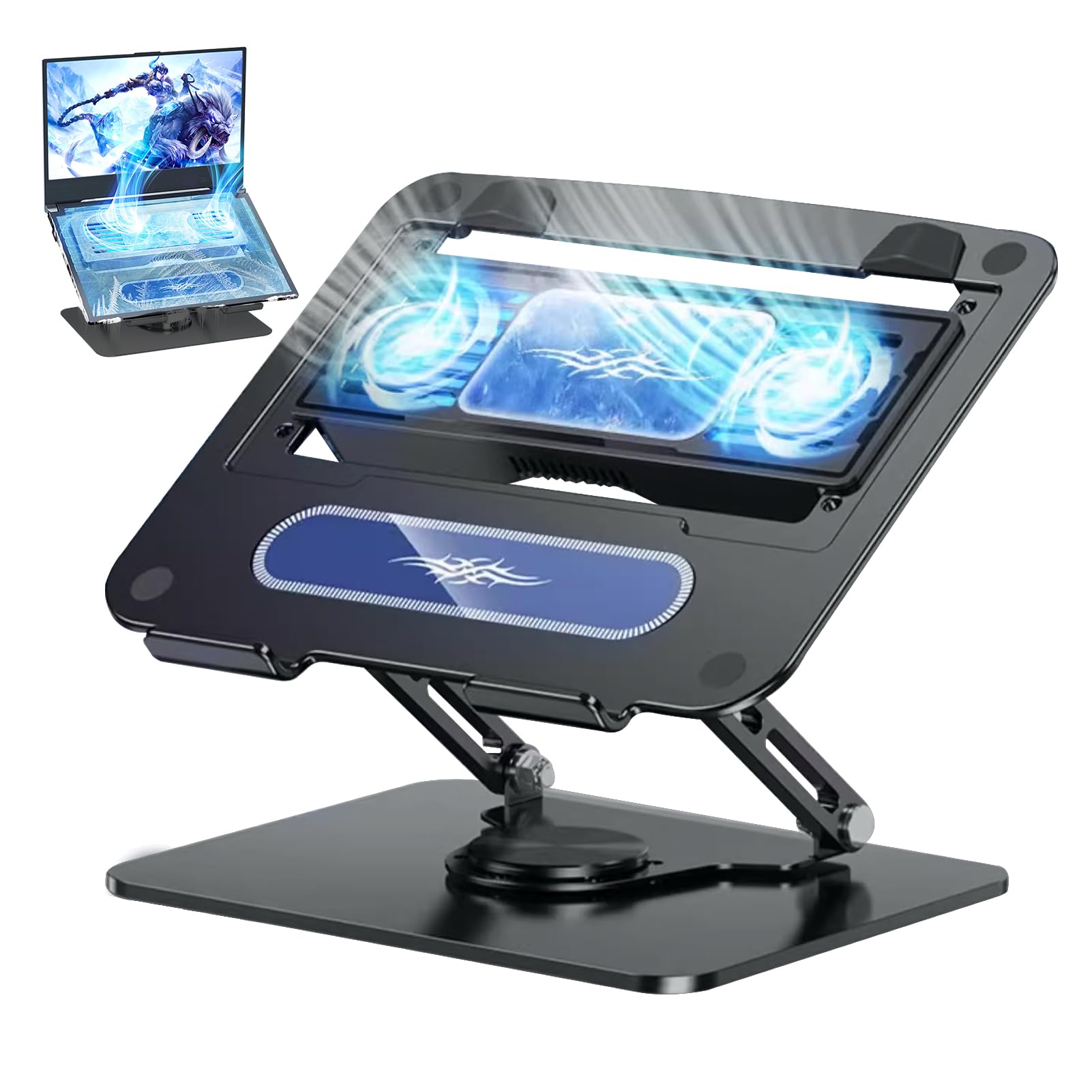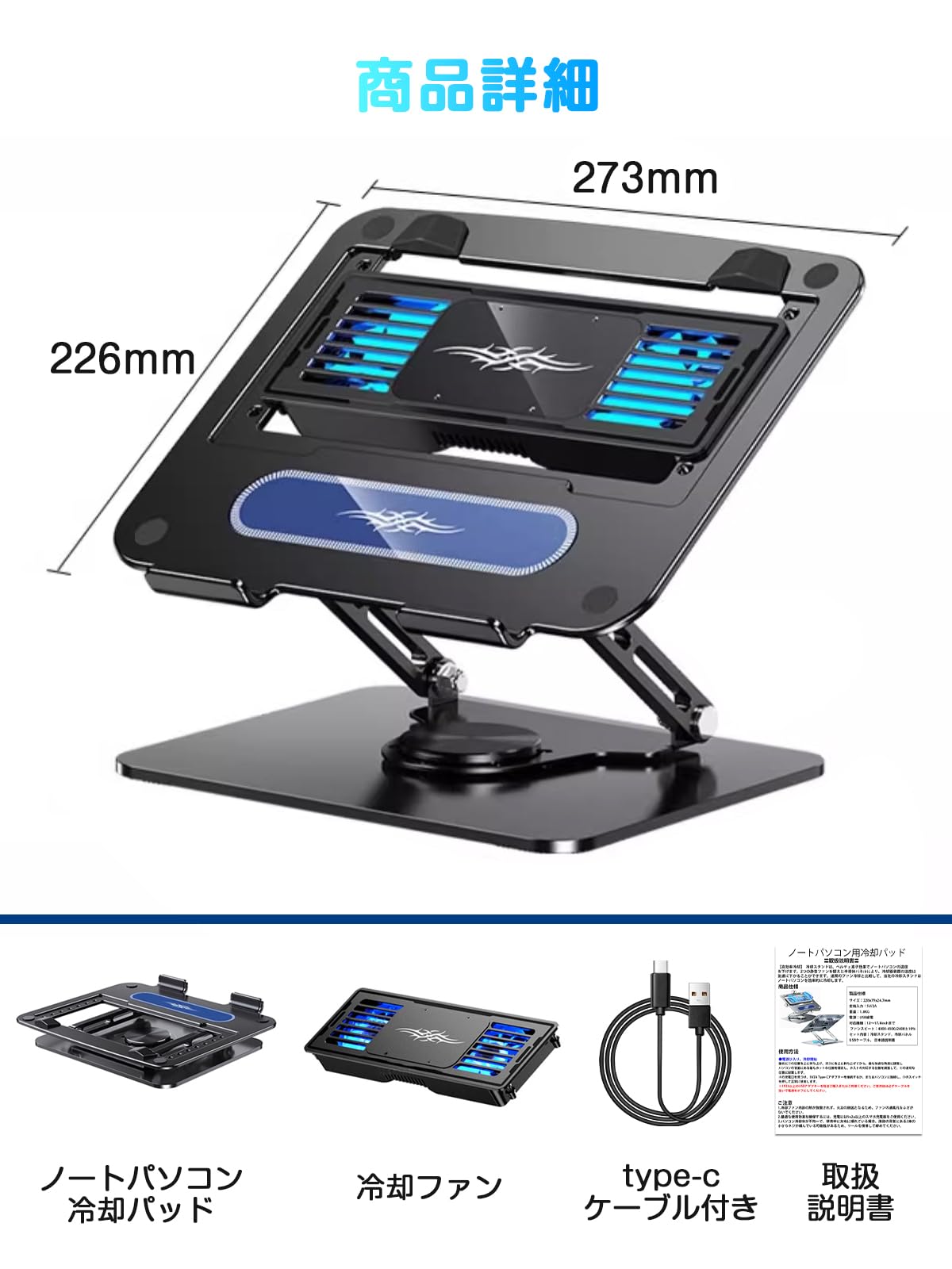 ノートパソコン冷却台 【2025新登場・強力 冷却ファン】 取り外し可能な熱電冷却器 ノートパソコン冷却パッド 冷却台 ノートPCクーラー ファン冷却 調整可能&360度回転スタンド 頑丈なカーボンスチール 16~24インチゲームPCとMacBookにも対応 オフィス/在宅勤務/出張などにも適用