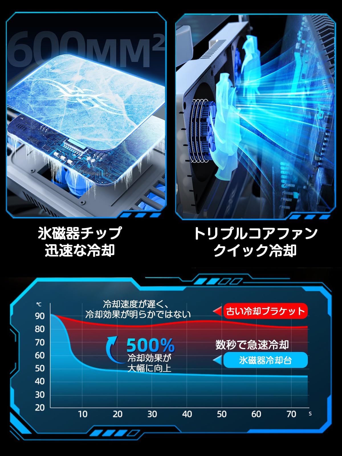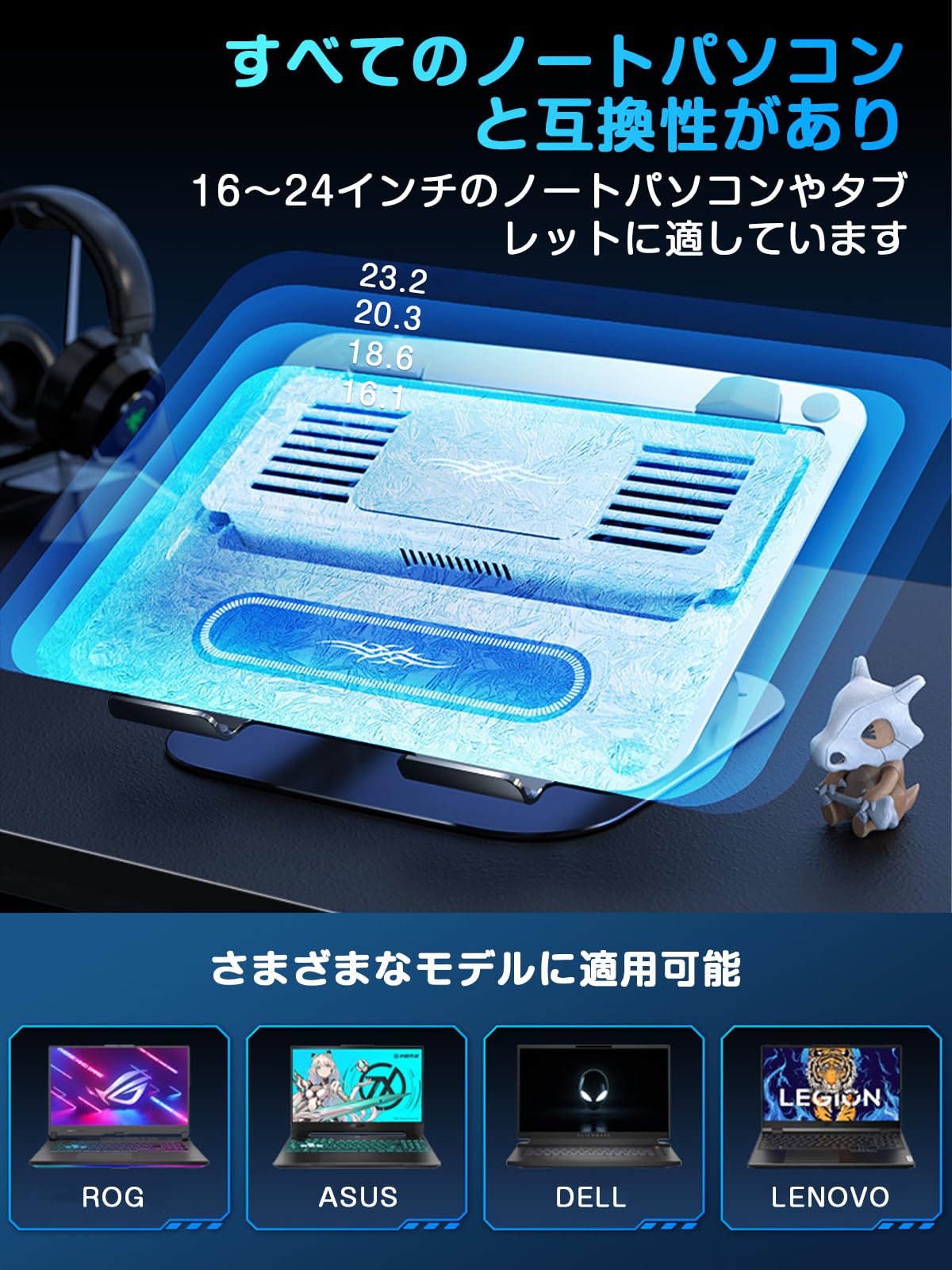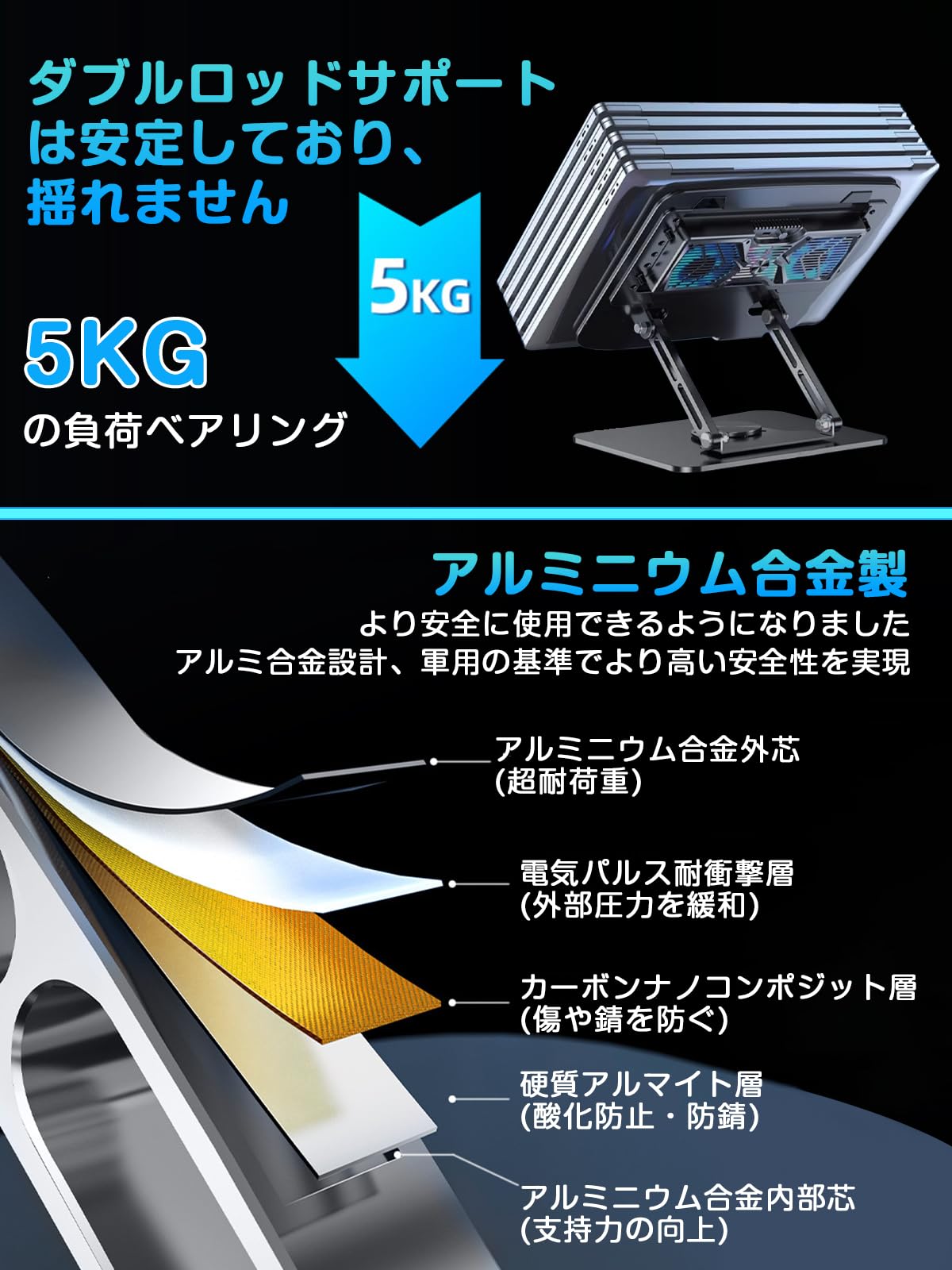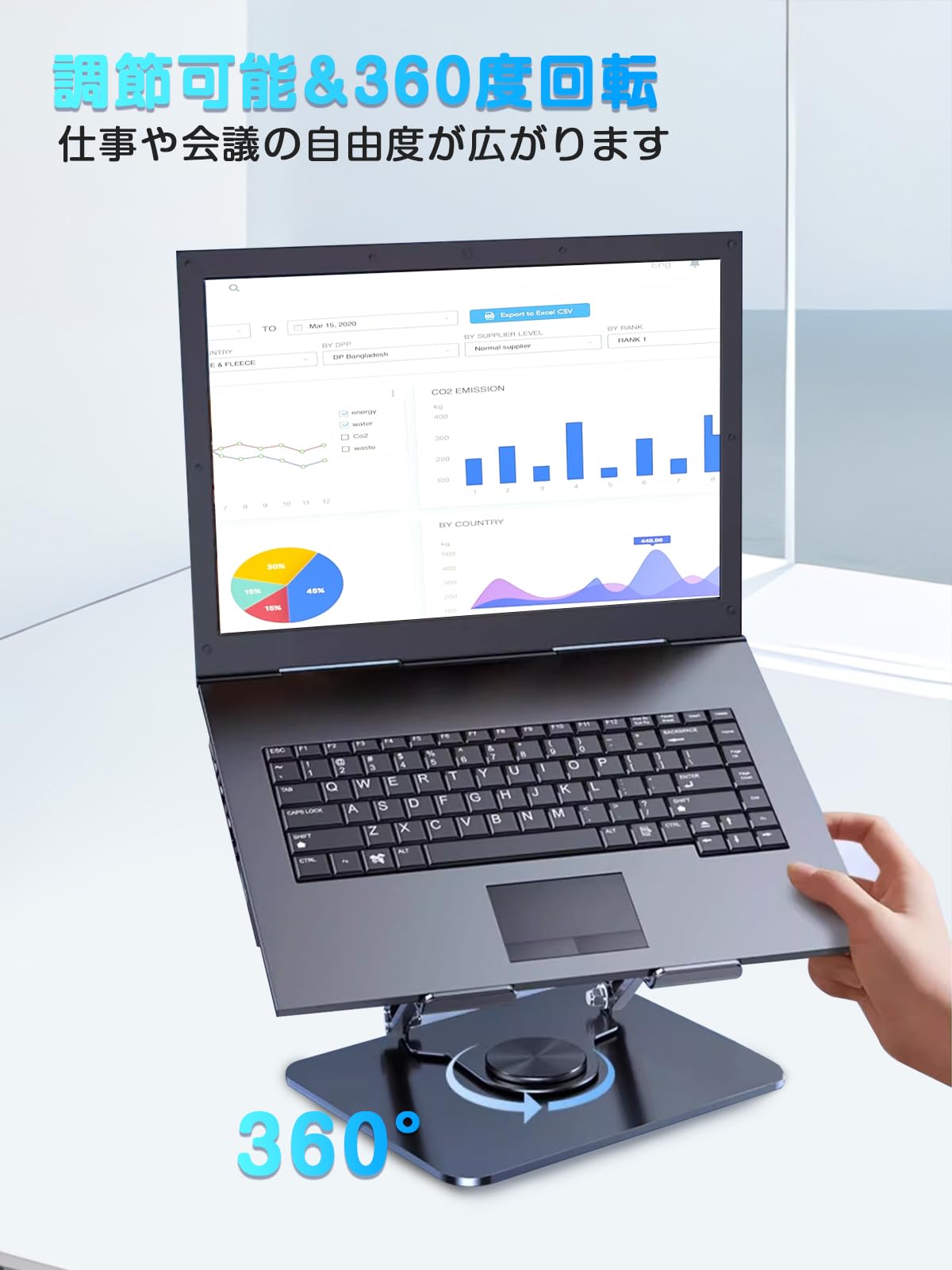 ノートパソコン冷却台 【2025新登場・強力 冷却ファン】 取り外し可能な熱電冷却器 ノートパソコン冷却パッド 冷却台 ノートPCクーラー ファン冷却 調整可能&360度回転スタンド 頑丈なカーボンスチール 16~24インチゲームPCとMacBookにも対応 オフィス/在宅勤務/出張などにも適用