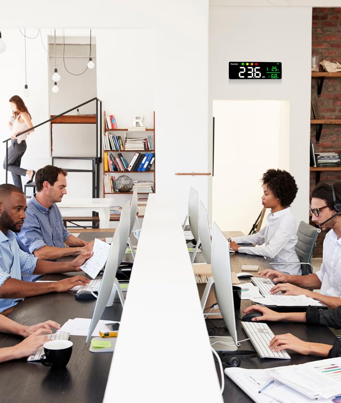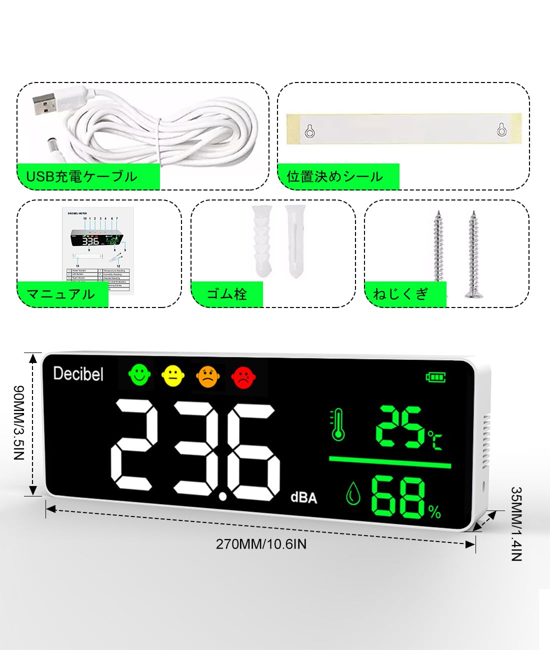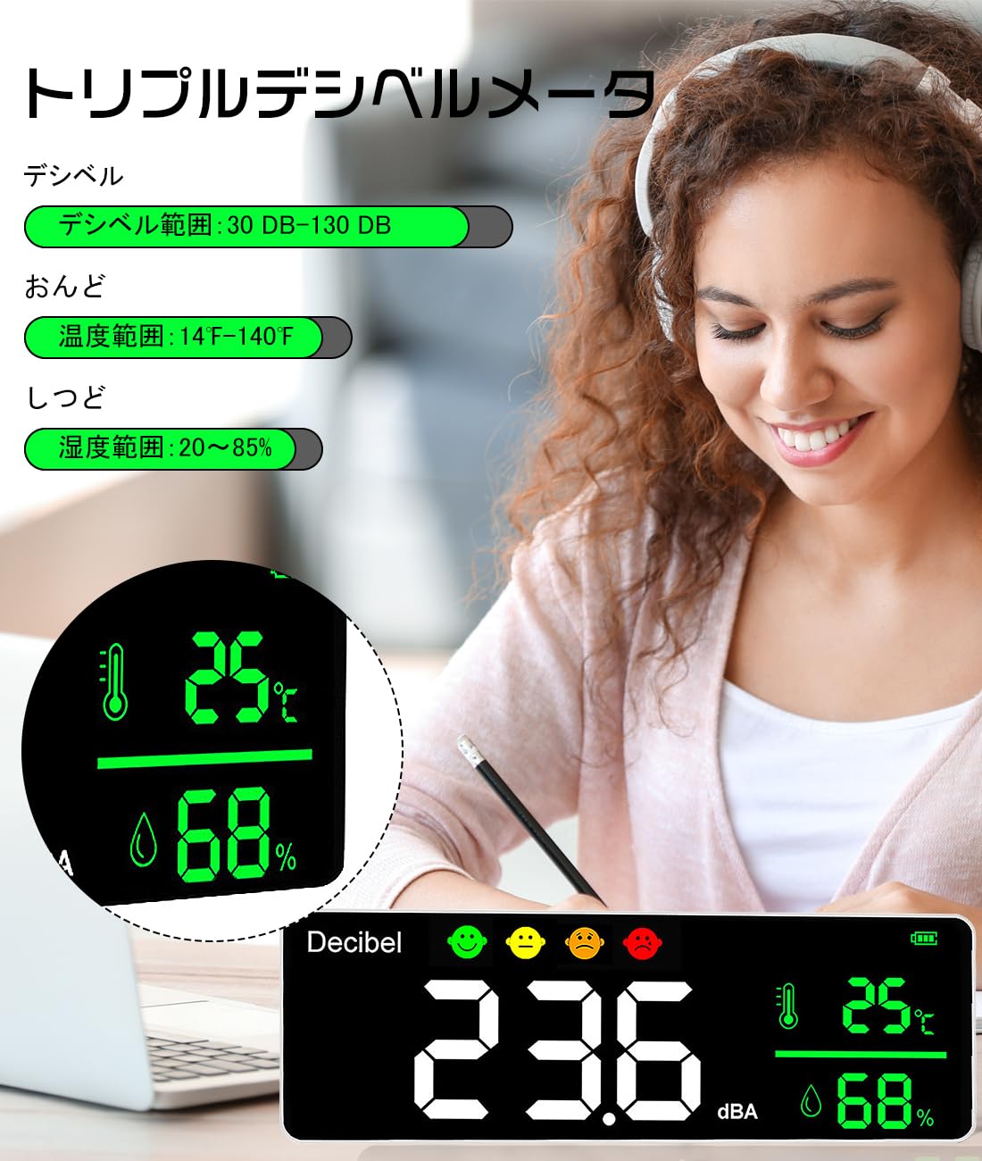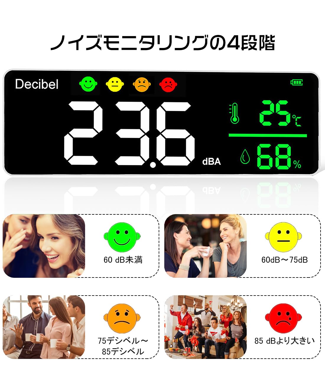 DWCQRTM デシベルメーター 騒音計 屋内壁掛けデシベルメーター ノイズメーター 温湿度検知器 3-in-1 LCDデジタル 教室騒音計 騒音デシベル計