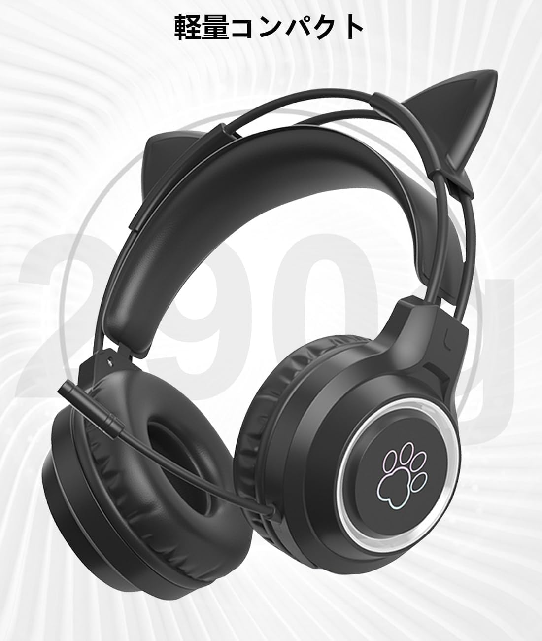 Absdefen ヘッドホン 猫耳イヤホン ヘッドセット 可愛い ゲーミングヘッドセット ネコ耳ヘッドフォン Bluetooth5.0 有線無線両用 3.5mm 伸縮式 折り畳み式 軽量 マイク付き LEDライト 7色自由変換 USBポート搭載 マイク内蔵 PC対応 在宅勤務 オンライン授業 ゲーミングなどに適用 クリスマス 誕生日 入学式 プレゼント 男女兼用 日本語取り扱い書 (ブラック)