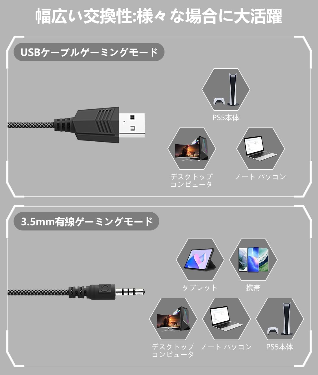ゲーミングヘッドセット 有線 ps4ヘッドセット ps5ヘッドセット 3.5mm switch 高精度マイク付き ヘッドホン へっどせっと LEDライト コントローラーミュート 軽量 ゲーム用 スイッチ対応 Xbox One PC用