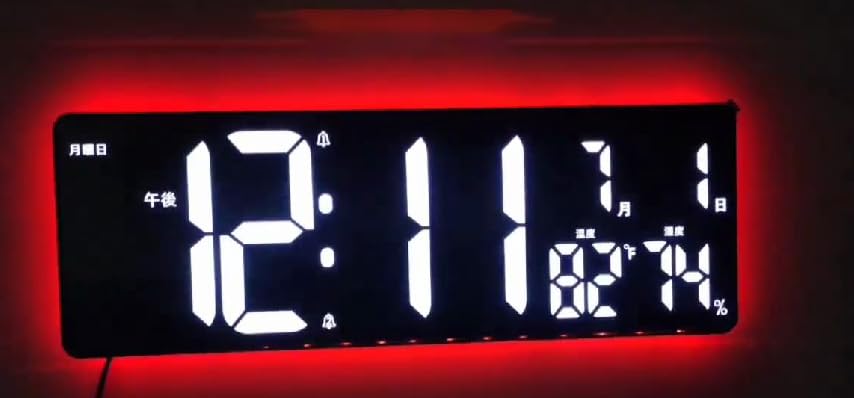 KOSUMOSU 多色デジタル時計 7色LED時計 RGB置き時計 ネオン壁掛け時計 明るさ調整可能な時計 15インチリモコン付き 時間表示(12/24時間)/日付/温度(℃/℉) アラーム機能ACD-215C…