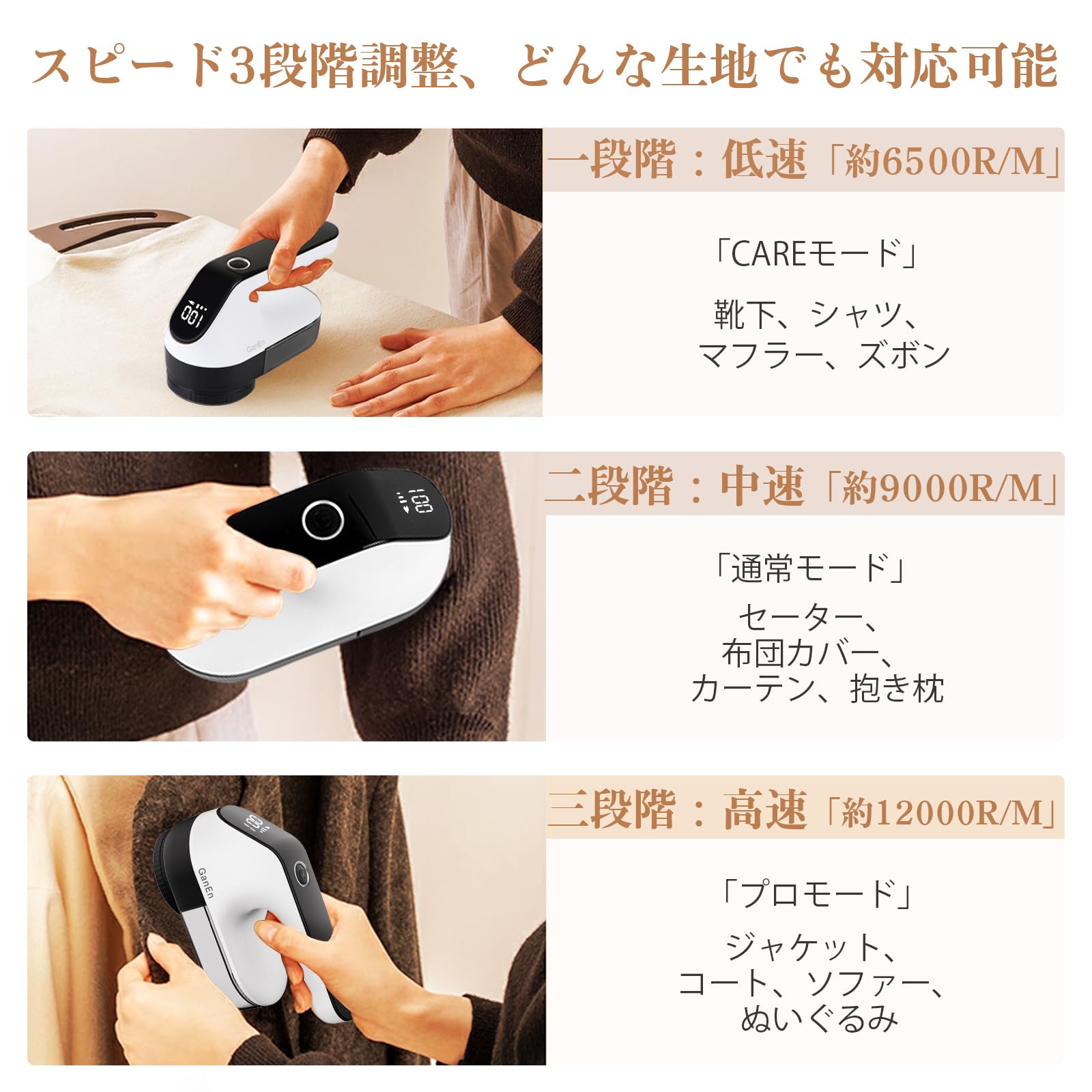KIDEE 毛玉取り けだまとり 電動 【2025 アップグレード版】 毛玉取り 電動 毛玉クリーナー 液晶ディスプレイ付き 3段階のスピード調整 強力6枚刃 Type-C充電式 安全装置 持ちやすく軽量 旅行 専業主婦 家庭用ギフト (ホワイト)
