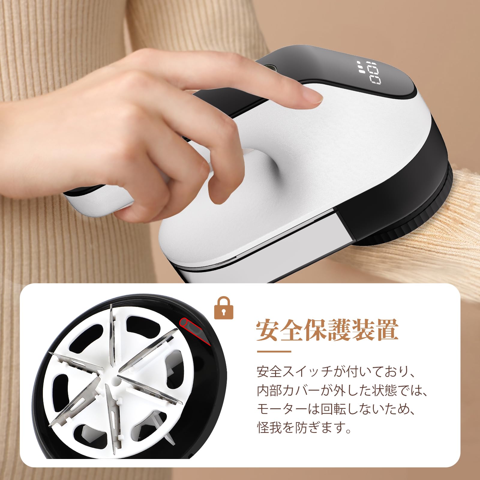 毛玉取り けだまとり 電動 LCD液晶ディスプレ 65mmの超大型強力6枚刃 スピード3段階調整 様々な衣類に対応 切れ味アップ 生地を傷めない 毛玉取り器 替刃付き 安全ロック USB充電式 コードレス使用可 持ちやすい 毛玉とり