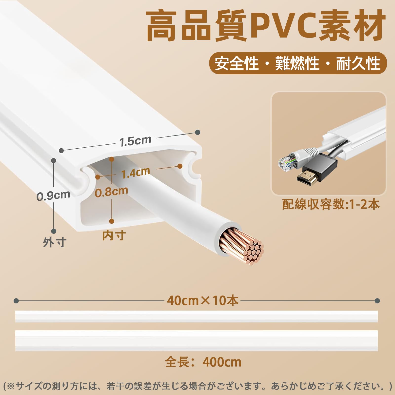 【新販売】配線カバー 配線モール テープ貼付済 電線ケーブルカバー ケーブルモール 配線隠し ケーブルプロテクター コードプロテクター 管理チャネルシステム テープ付き 日本語取扱説明書付き 壁/テレビ/コンピュータ/オフィスなどの配線整理用 1.5cm(幅)*0.9cm(高さ)*40cm(長さ)x10本パック白色