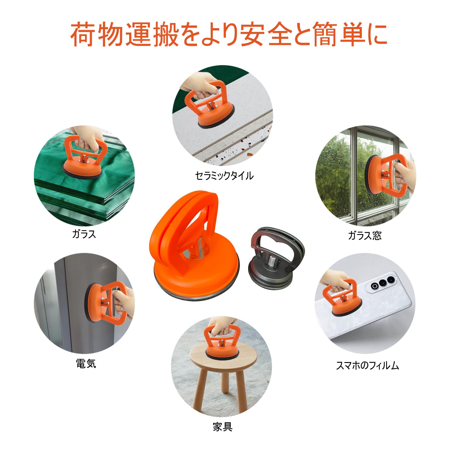 DR.TREE サクションカップ 強力吸盤 大吸盤+小吸盤 2個セット 車 凹み直し 荷物運搬 ヘコミ修復 車 ワンタッチ吸盤 オレンジ+黒