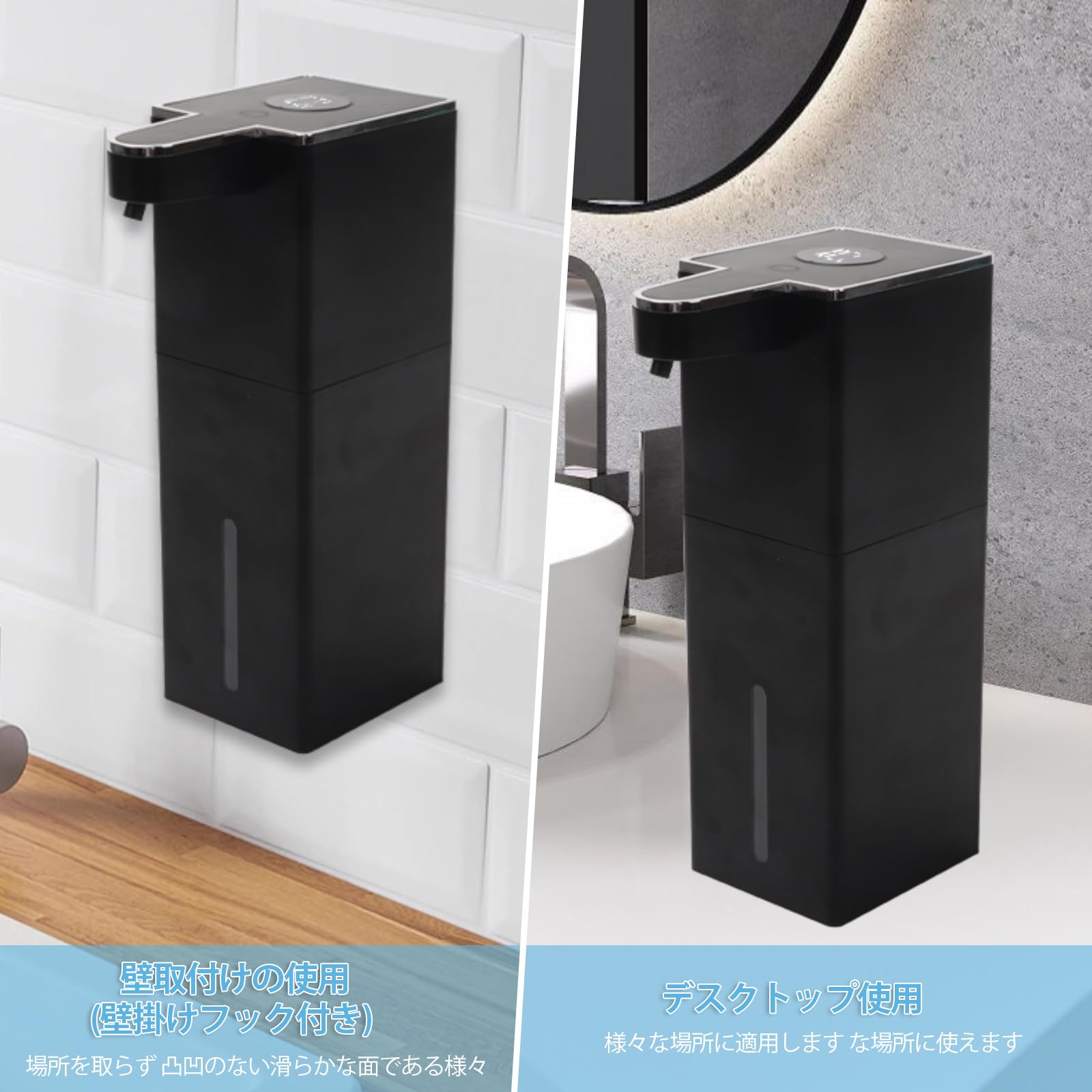 JEMISUN ソープディスペンサー 自動 泡 ハンドソープ 詰め替え 400ml 吐出量4段階調節 壁掛け 充電式 防水 食器用洗剤 キッチン 洗面所などに適用 日本語説明書付き (ブラック)