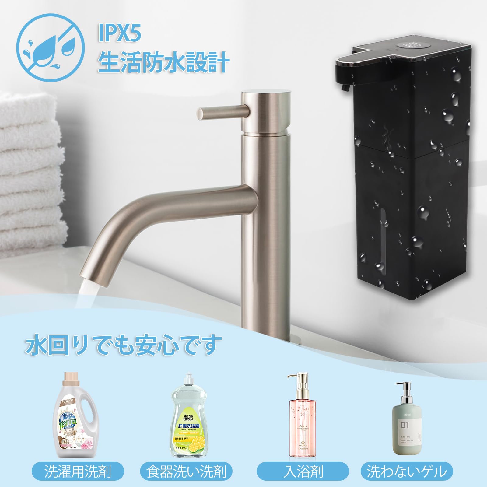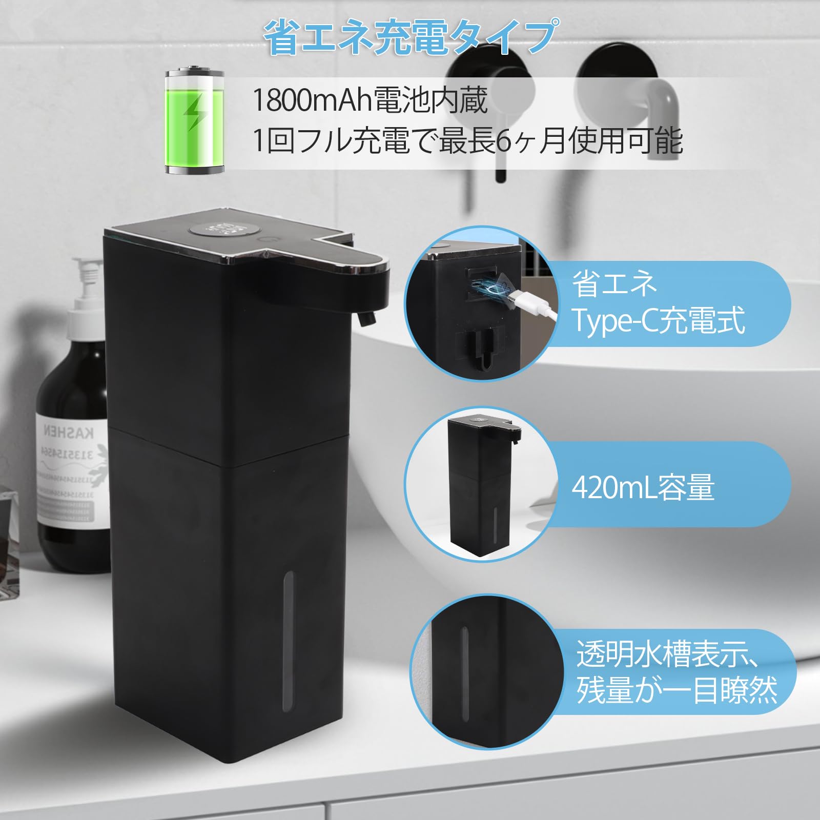ディスペンサー ハンドソープ 液体 吐出量4段階調 420ml 壁掛け オートディスペンサー 食器洗剤 ソープディスペンサー 充電式 キッチン 洗面所などに適用 IPX5防水(ブラック, 液体タイプ)