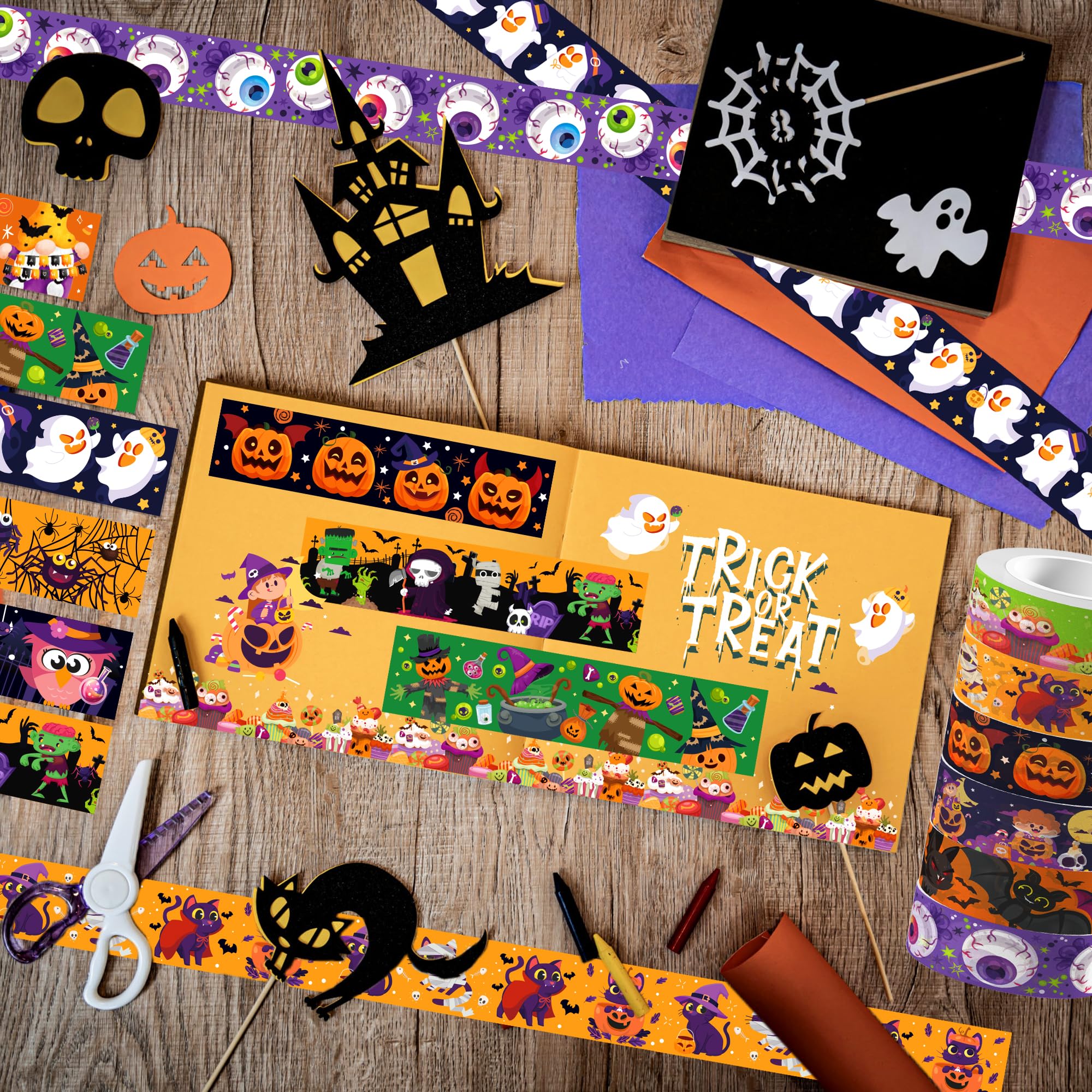 ハロウィン和紙テープ12巻セット、カボチャとコウモリの柄ホリデー装飾テープ(スクラップブッキング用品、DIYクラフト、ジャーナリング用品、プランナー用) [並行輸入品]