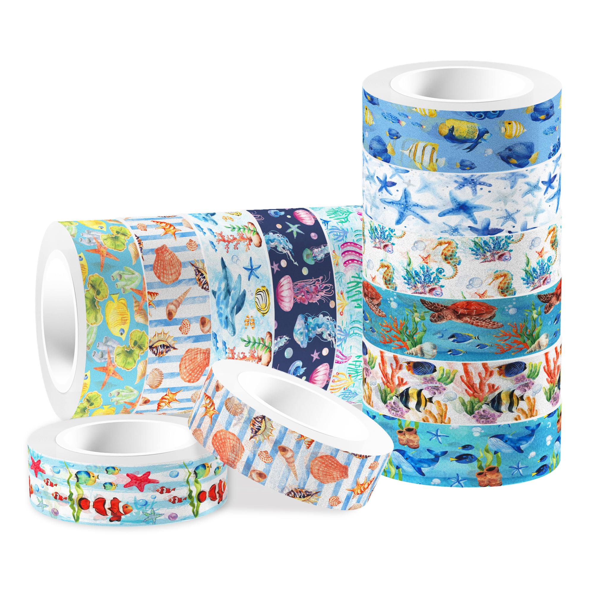 12ロール 水中世界和紙テープセット海の生き物 キャラクター装飾テープスクラップブッキング用品用 休日装飾テープDIYクラフト [並行輸入品]