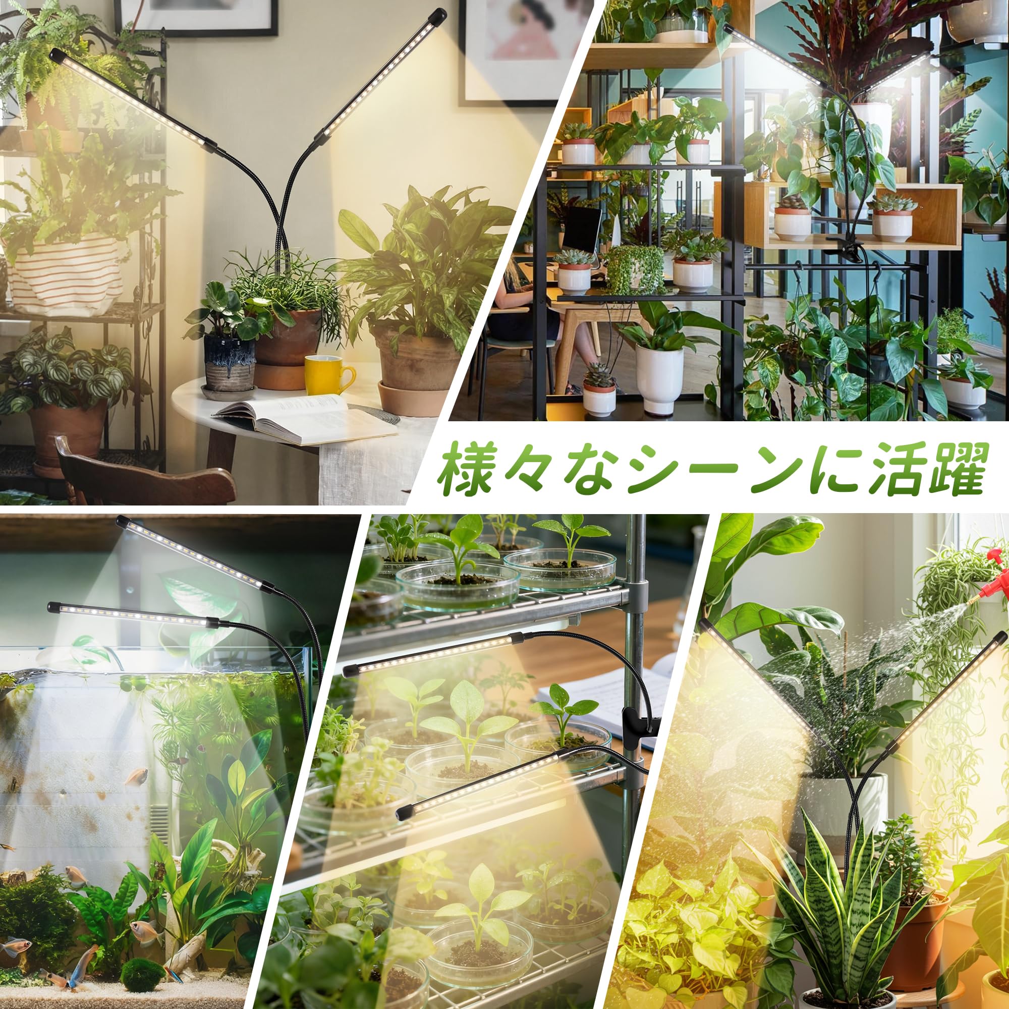 CHAMCHOI 植物育成ライト led 2ヘッド クリップ式 フルスペクトル 植物成長ランプ 10段階調光可能 24hサイクル 3h/9h/12hタイマー付き 観葉植物 育成ライト 室内用 設置簡単 水耕栽培 多肉 苗木 家庭菜園 水草栽培 園芸用品