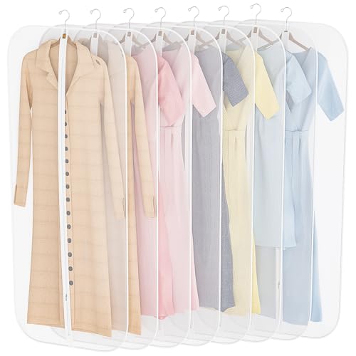 FJANS 衣類カバー 防虫 防カビ クローゼット用 洋服カバー: 矩形 8枚セット 60×140cm スーツ ドレス コート 収納 半透明 折り畳み可能 繰り返し使用可能 PEVA製