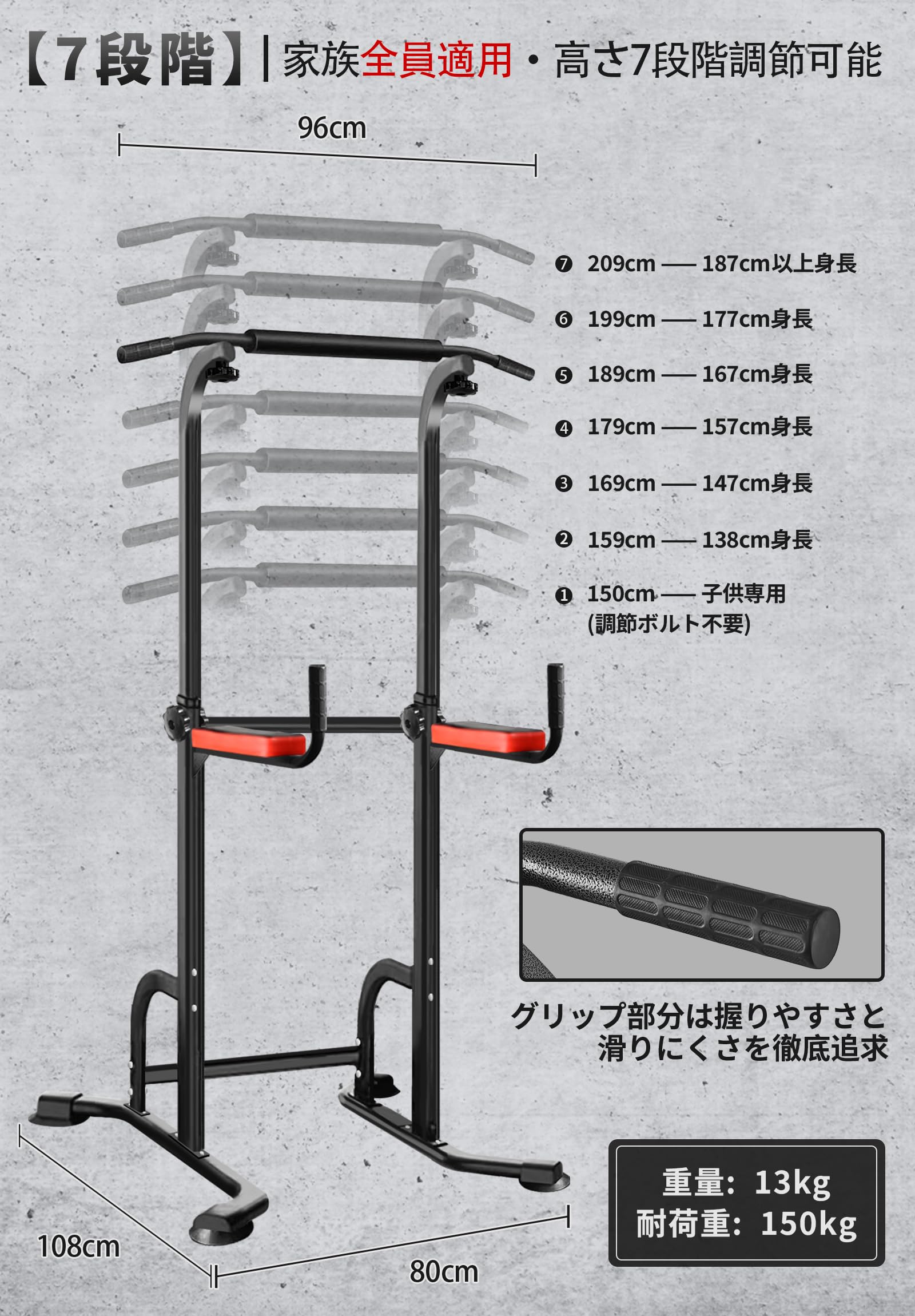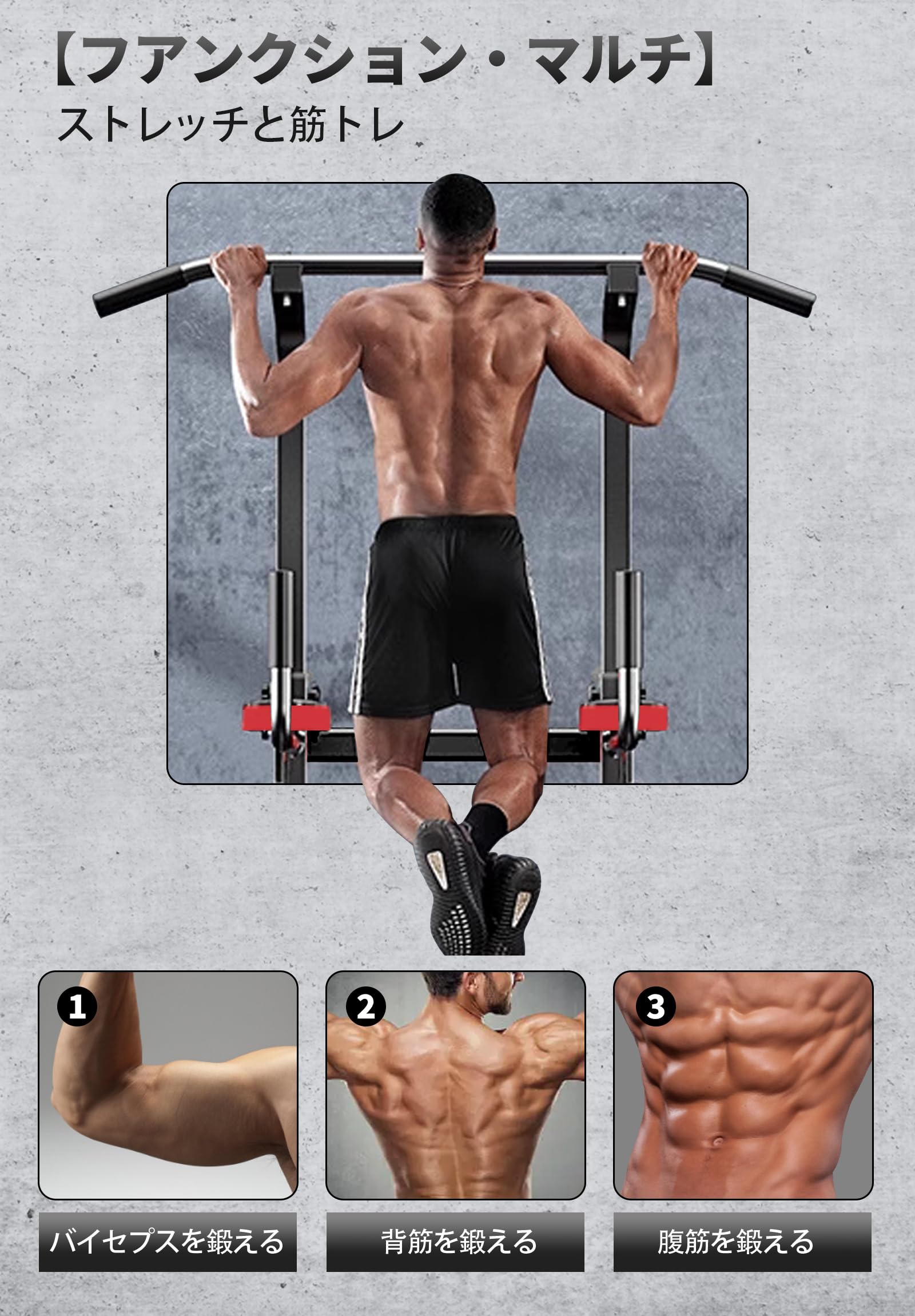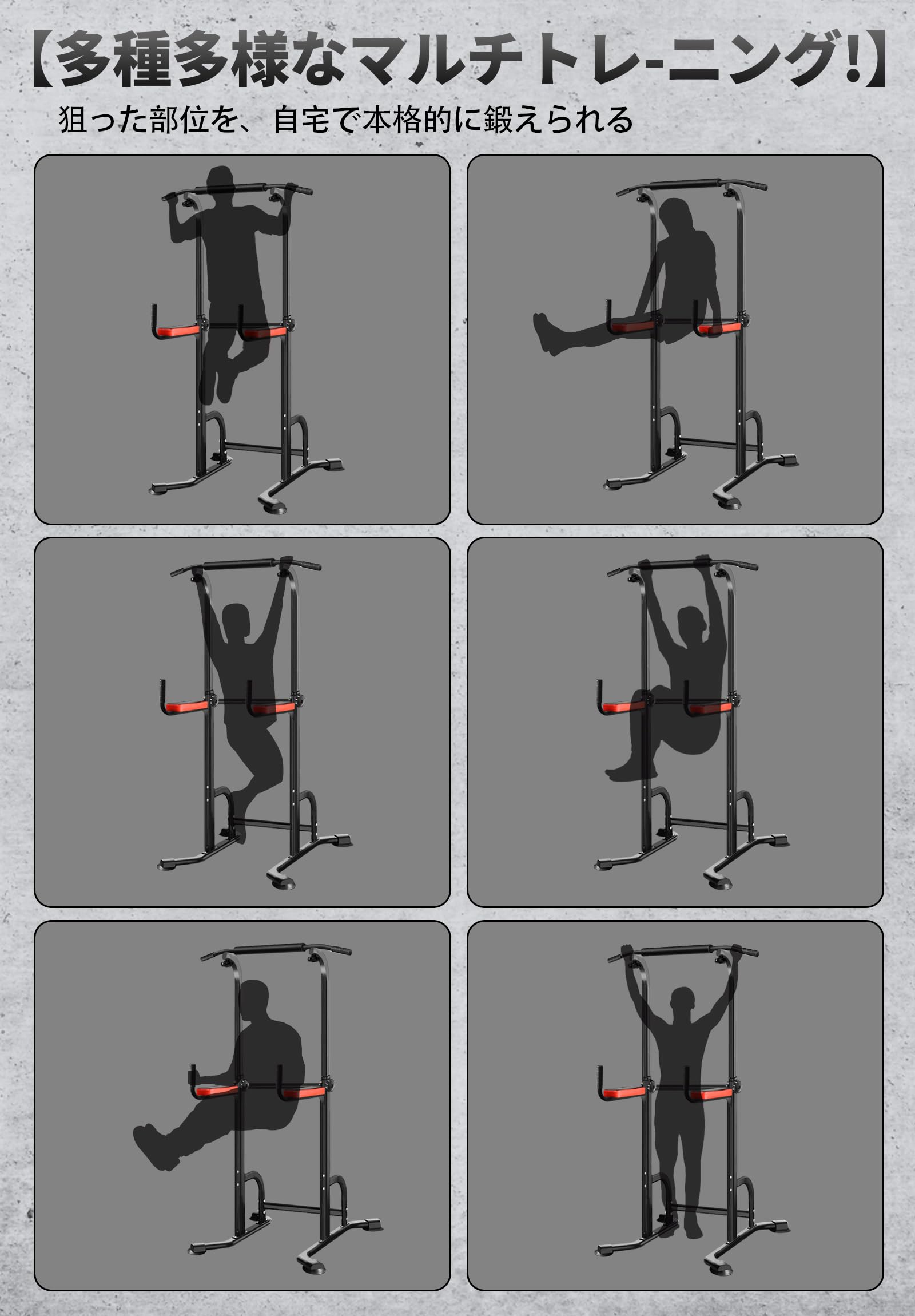 Auromi懸垂器具 懸垂マシン ぶら下がり健康器 多機能 筋力 筋肉トレーニング 器具 背筋 腹筋 大胸筋 【組立簡単/日本語説明書/耐荷重150kg/7段調節】