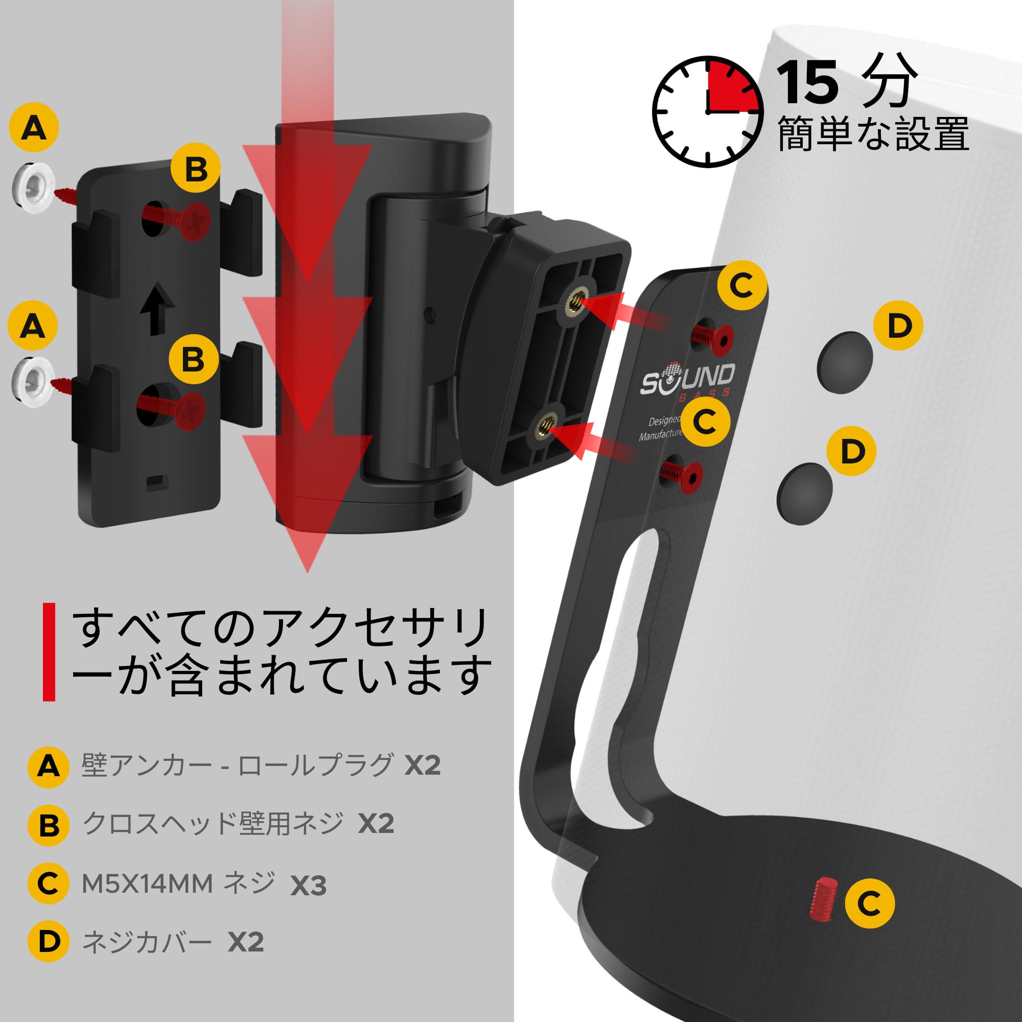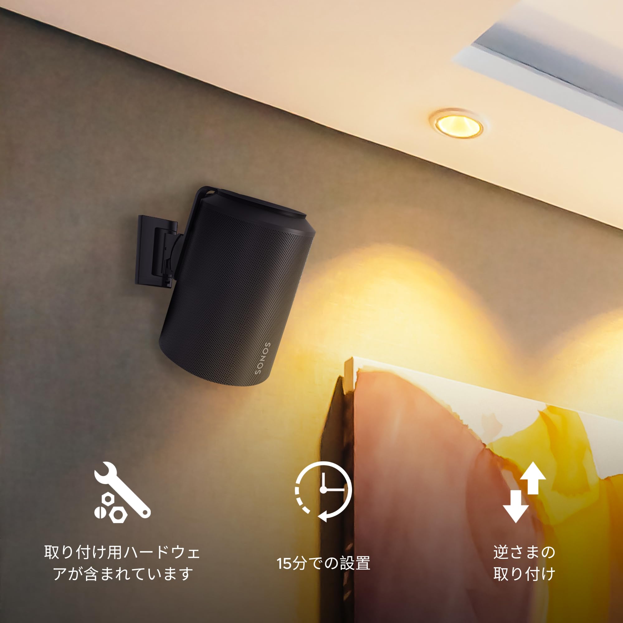 Sound Bass ERA300 壁取り付け金具 チルト&スイベル ブラック 1個 Sonos ERA 300対応 簡単取り付け 取付キット付き