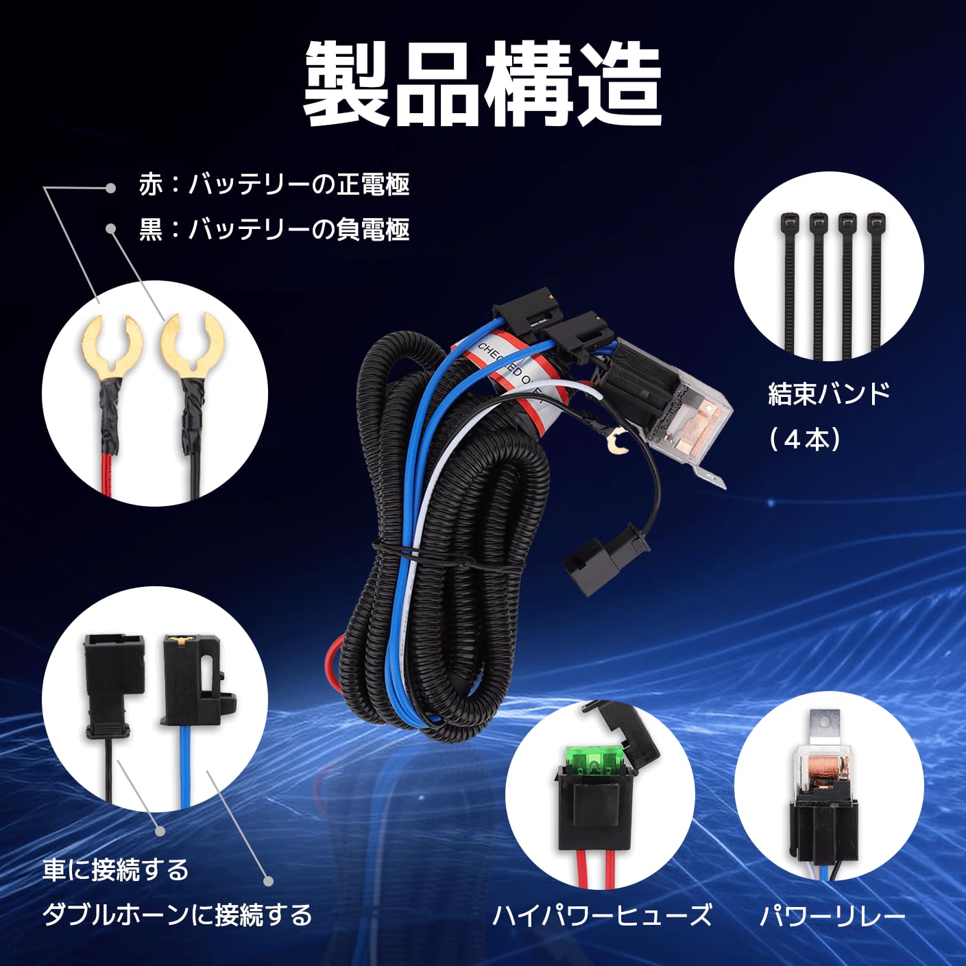 Safego トヨタホーンハーネス 交換用 耐熱性二股分岐ハーネスリレー ヒューズリングリレーキット 12V/ 80A ダブルホーンシステム改造用 150cm