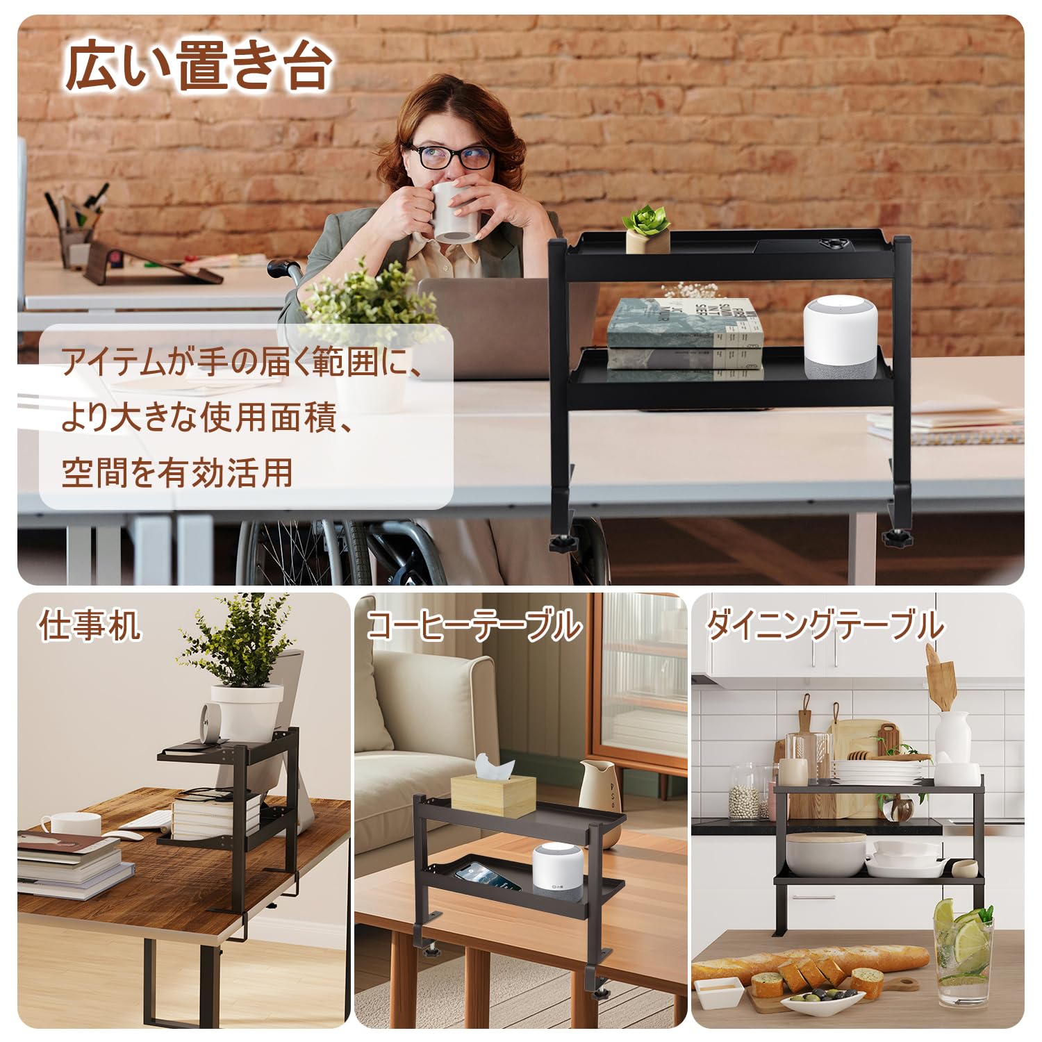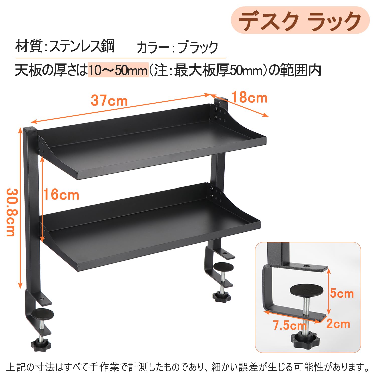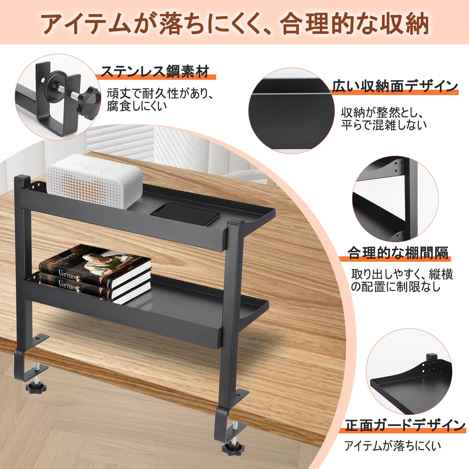 Aissiora デスク上収納 穴あけ不要 デスクサイドラック 二段机上台 卓上棚 卓上ラック 可動 クランプ固定 前後に調節できるデスク上/下 ケーブル 本 小物収納