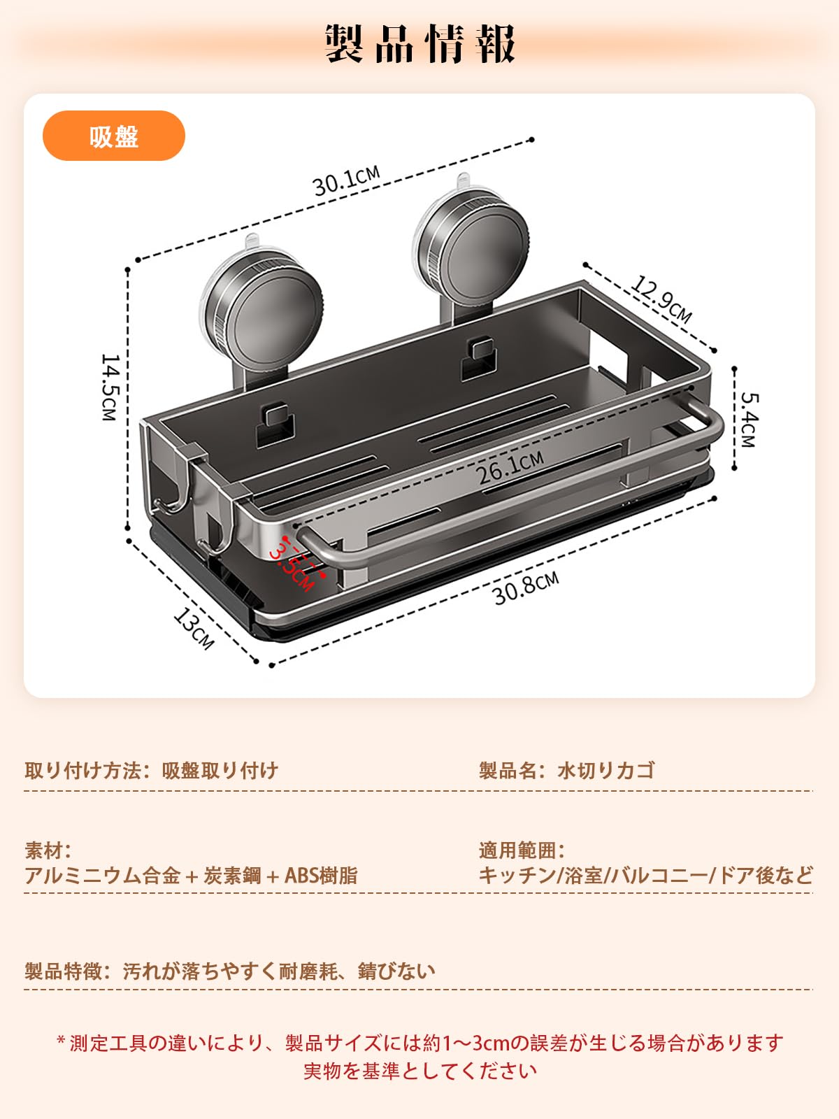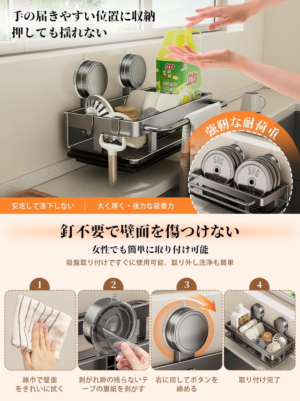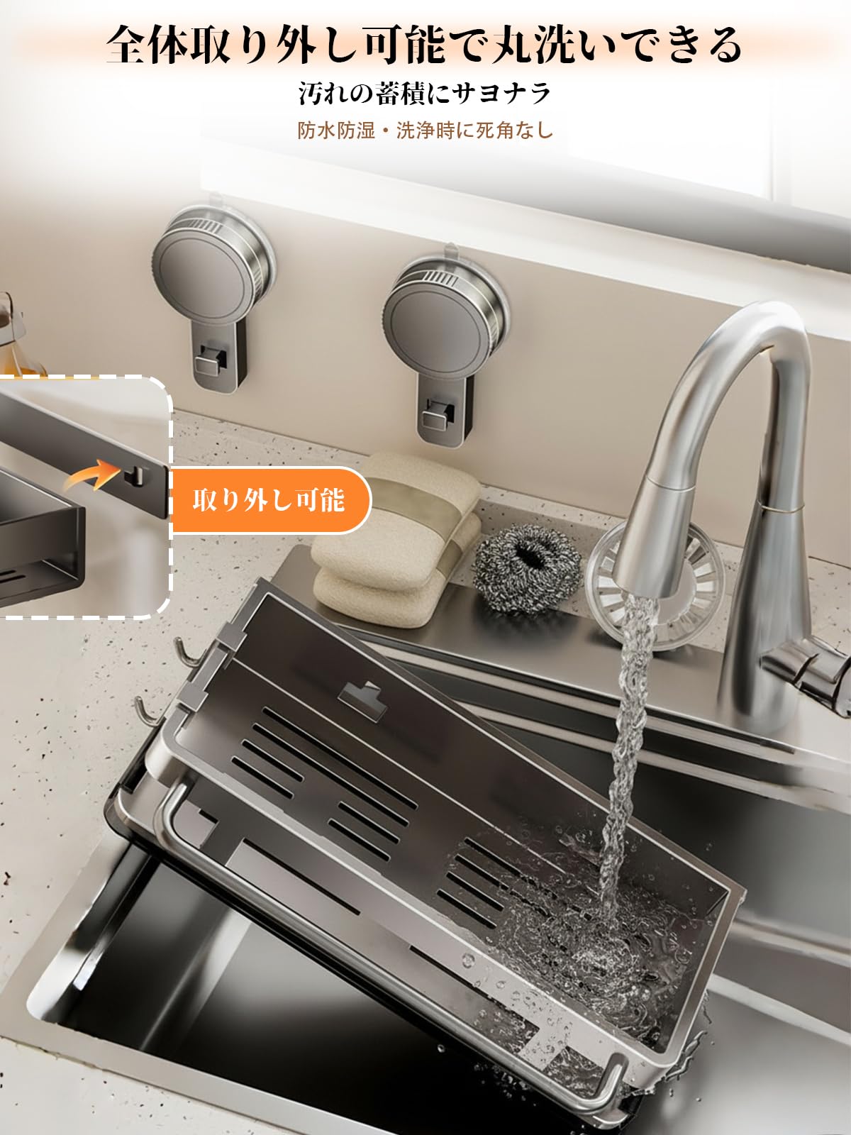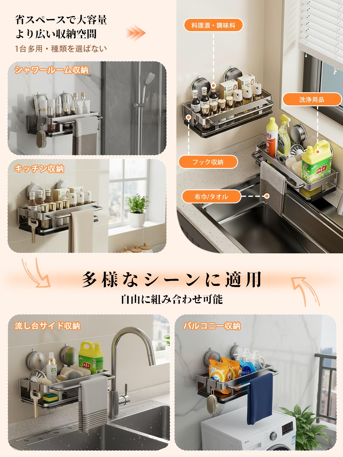 Aissiora スポンジホルダー 強力な吸盤ラック 真空吸着で落ちない スポンジホルダー 洗剤置き 収納トレイ ステンレス鋼 キッチンウォッシュツール収納キャディ 錆びにくいスポンジスタンド 可動式仕切り板付き シャンプー置き 壁掛け棚 バスルーム/洗面所/キッチン/浴室収納