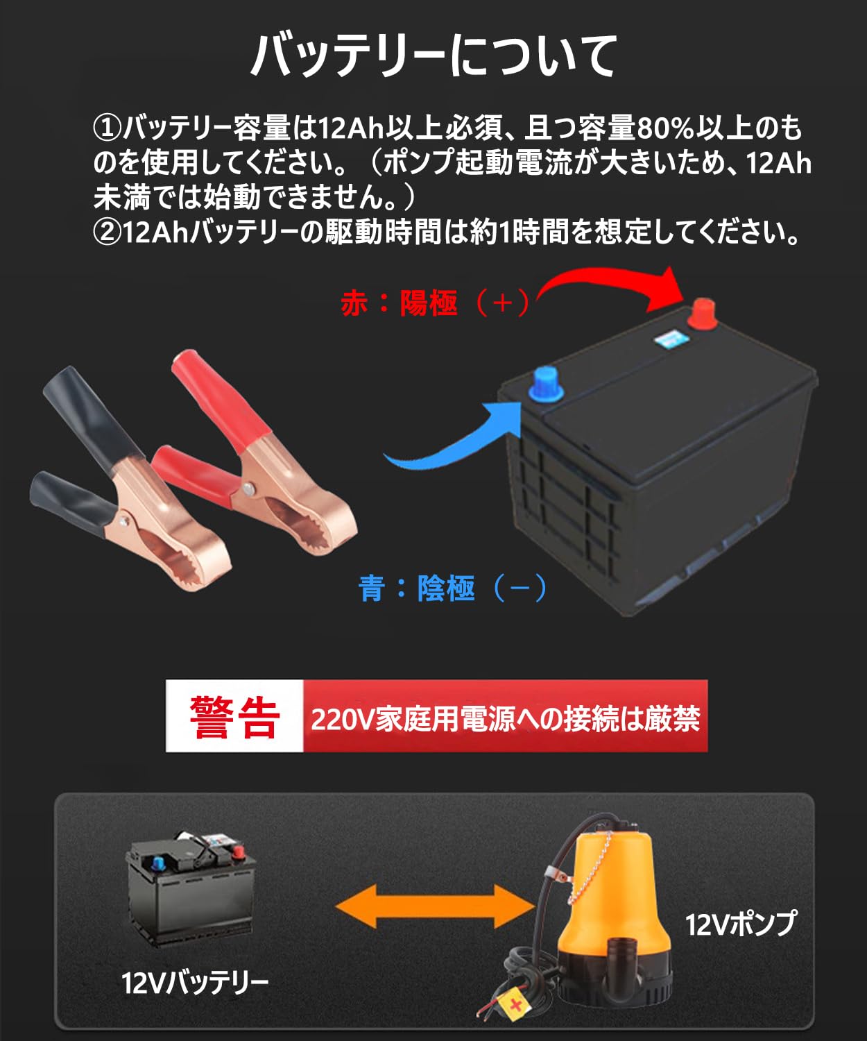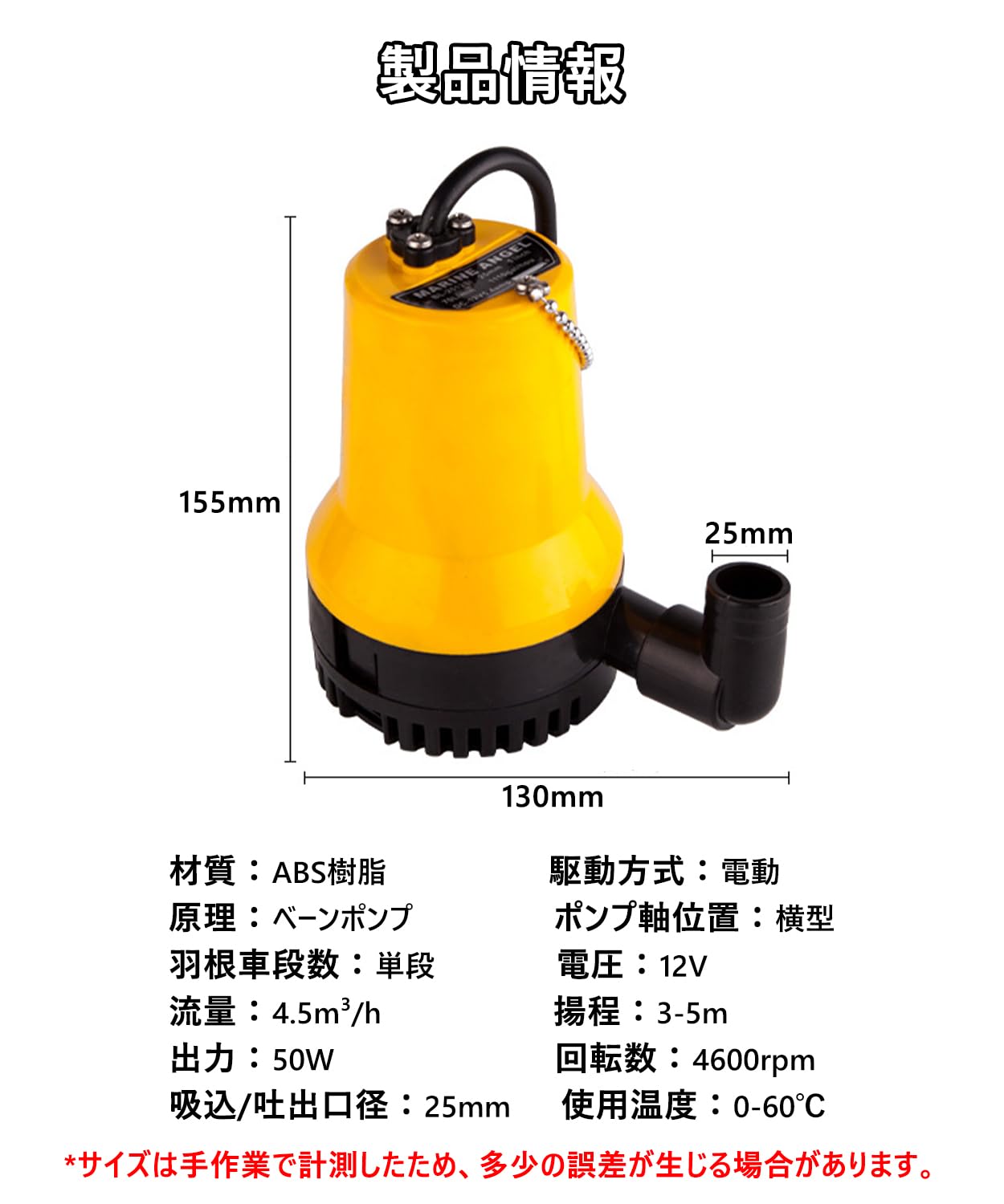 Aquafix 給水・排水ポンプ 小型水中ポンプ ワニクリップ付き 直流12V 70W 電源コード1.5m 静音 高圧 軽量 海水対応 船外機/養魚場用